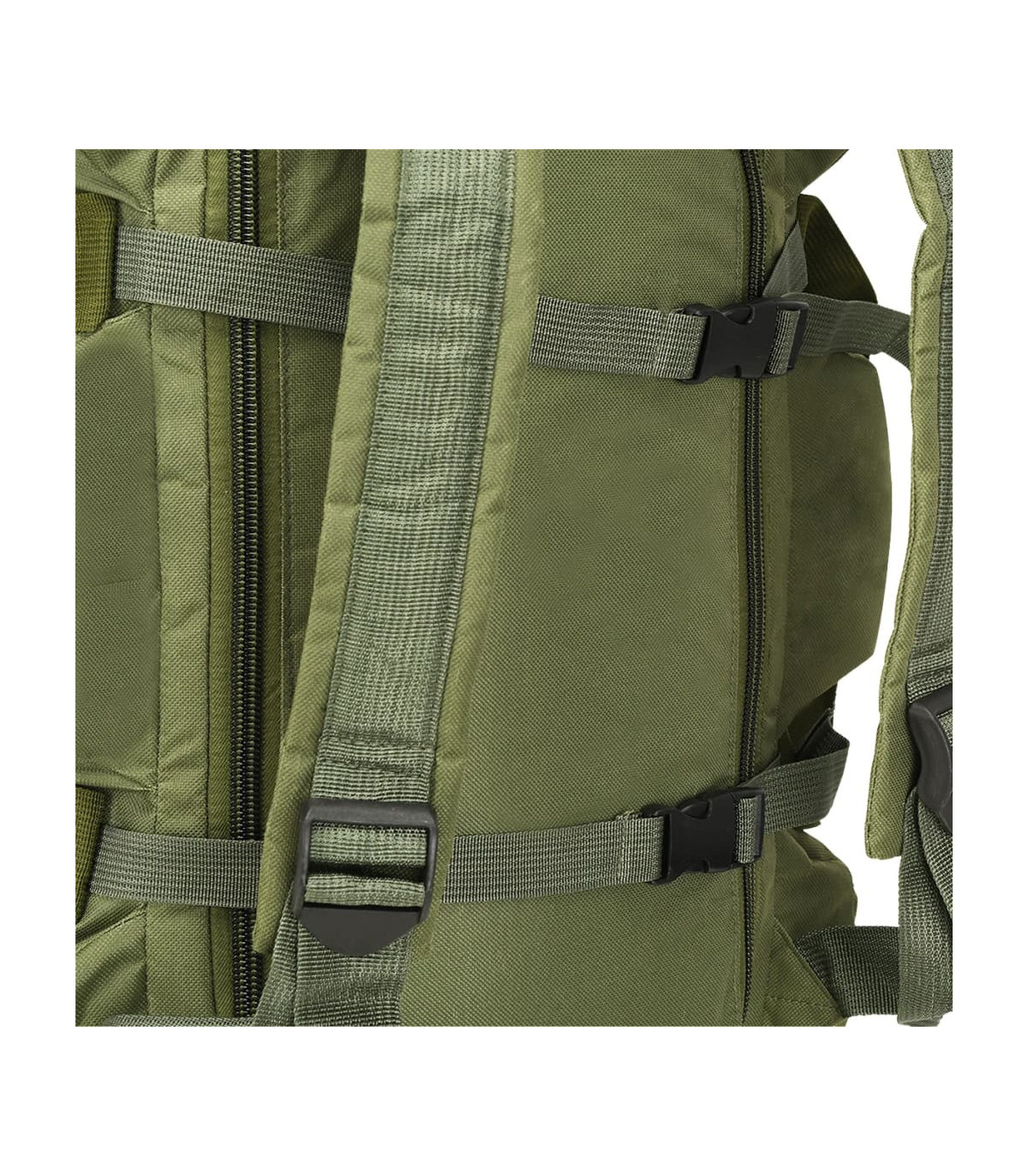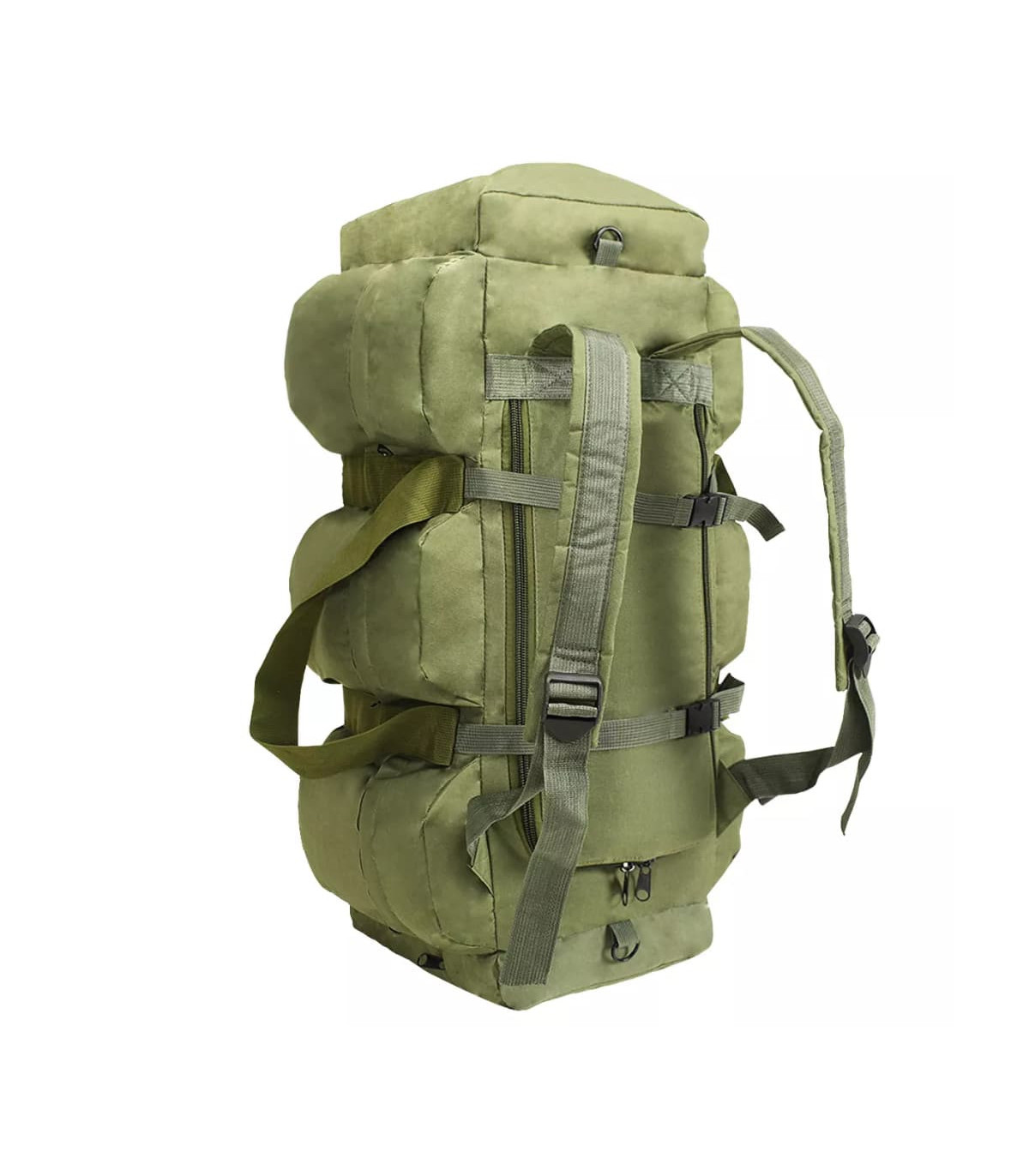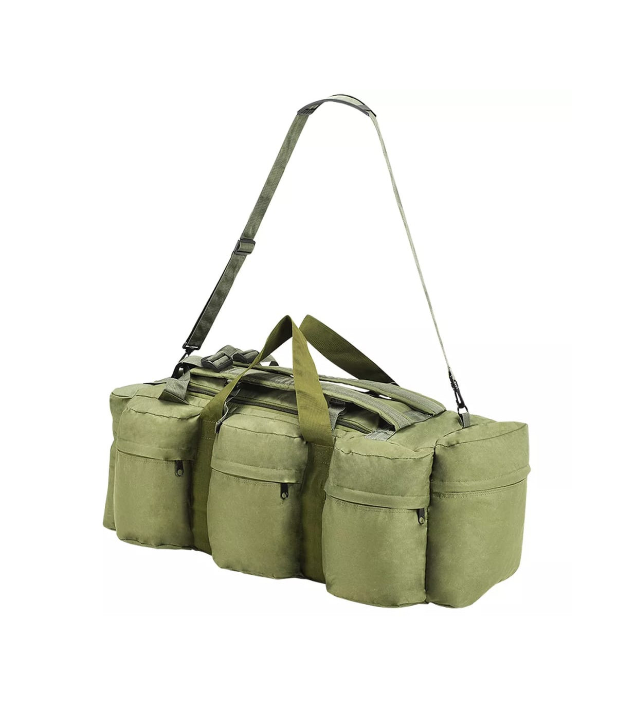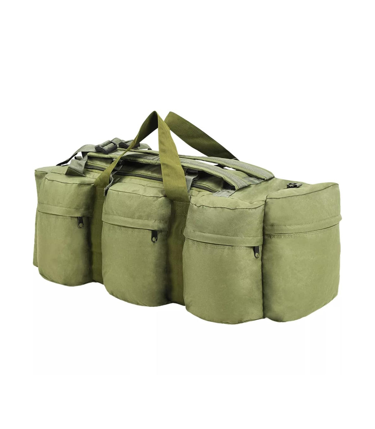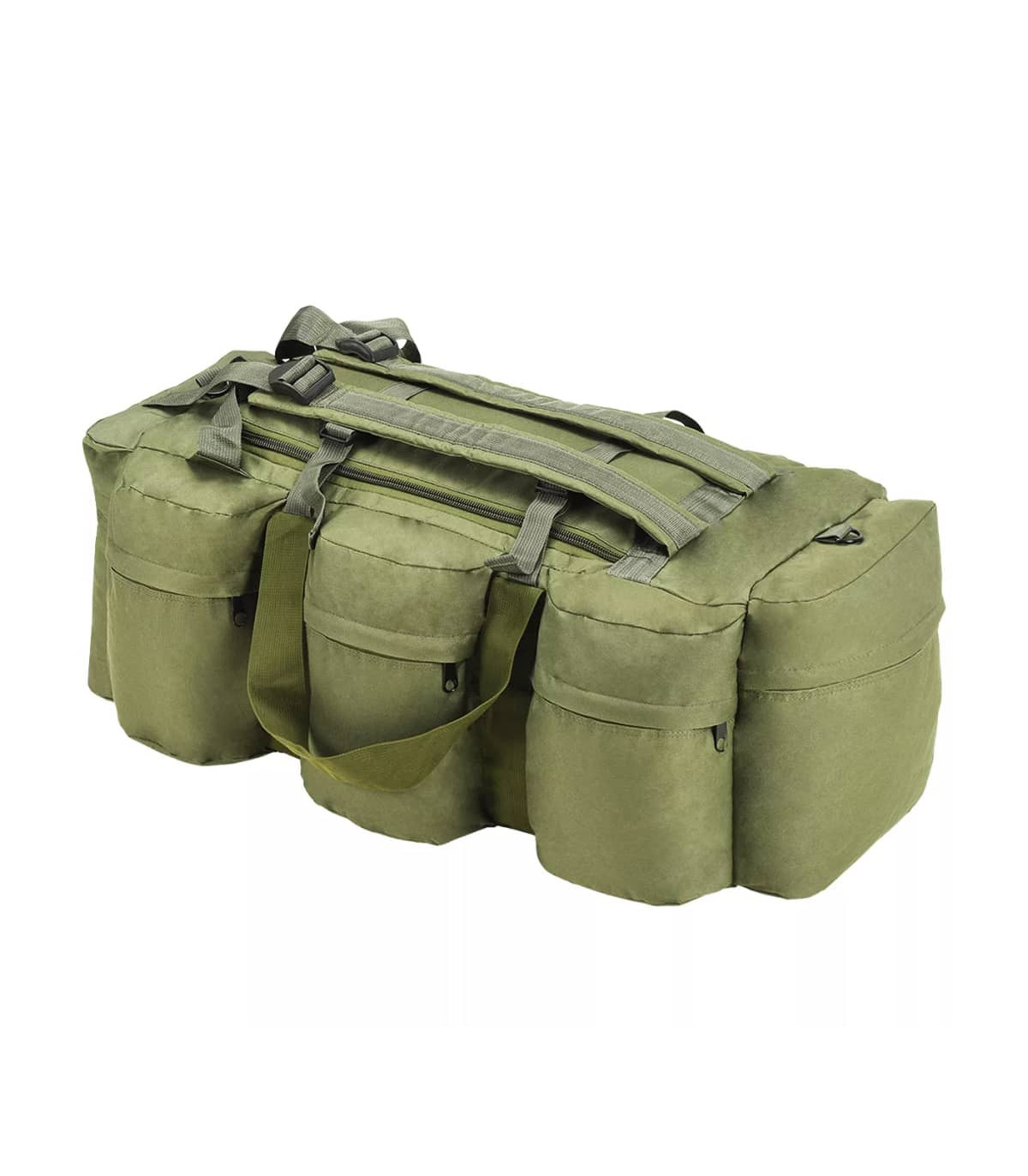This versatile, army-style duffel bag combines the functionality of a duffel bag, a shoulder bag and a backpack. It will be the ideal companion for travellers, but also for scouts, hunters, hikers and outdoor enthusiasts. This duffel bag is made of tear-resistant and water-resistant coated oxford fabric that can take really a beating. It is designed with 1 large main compartment and 8 smaller, outside pockets with zips, which provide ample storage room for everything you need when working out, travelling, camping, hiking, etc. For easy carrying, the weekender overnight bag is equipped with 1 adjustable shoulder strap that can also be removed when needed, 2 carrying handles and 2 adjustable backpack straps. The shoulder strap and backpack straps are padded for extra comfort.