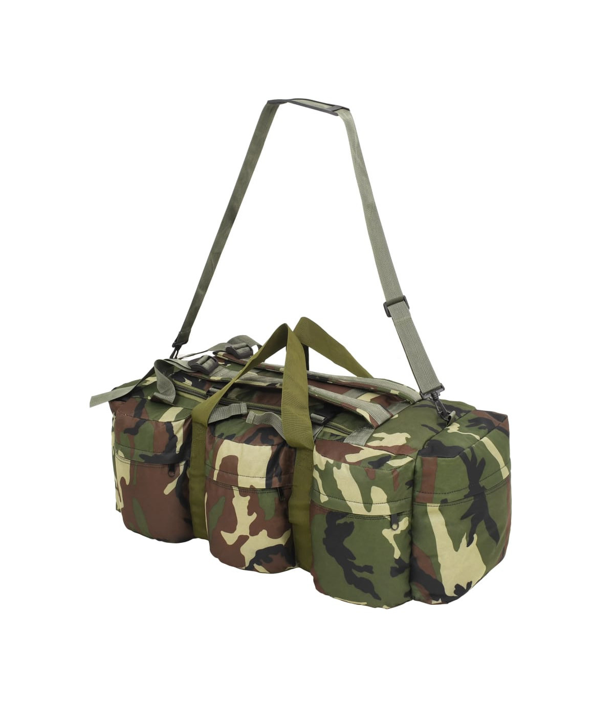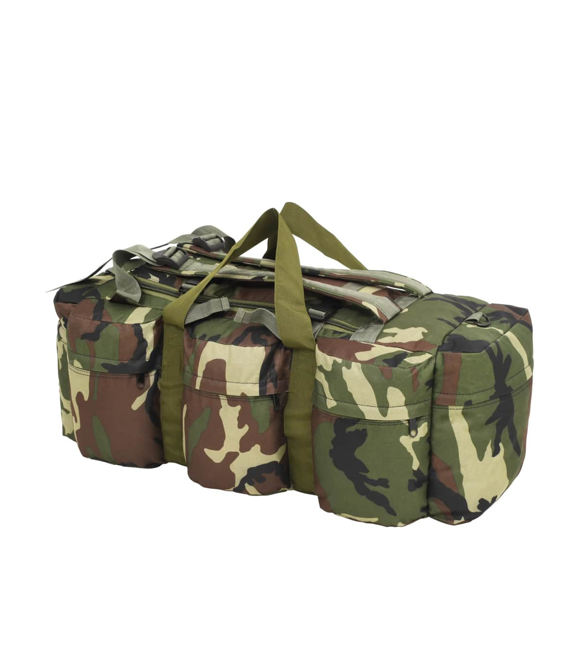 This versatile, army-style duffel bag combines the functionality of a duffel bag, a shoulder bag and a backpack. It will be the ideal companion for travellers, but also for scouts, hunters, hikers and outdoor enthusiasts. This duffel bag is made of tear-resistant and water-resistant coated oxford fabric that can take really a beating. It is designed with 1 large main compartment and 8 smaller, outside pockets with zips, which provide ample storage room for everything you need when working out, travelling, camping, hiking, etc. For easy carrying, the weekender overnight bag is equipped with 1 adjustable shoulder strap that can also be removed when needed, 2 carrying handles and 2 adjustable backpack straps. The shoulder strap and backpack straps are padded for extra comfort.