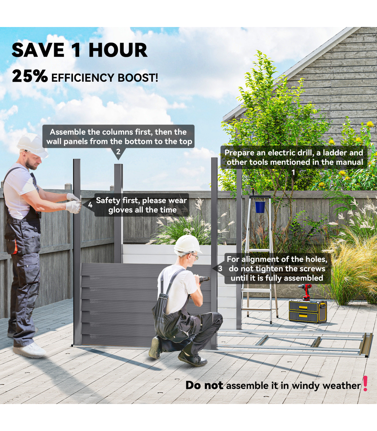 ? Note: Requires at least three people to install it in three hours. Do not install in strong windy conditions.
