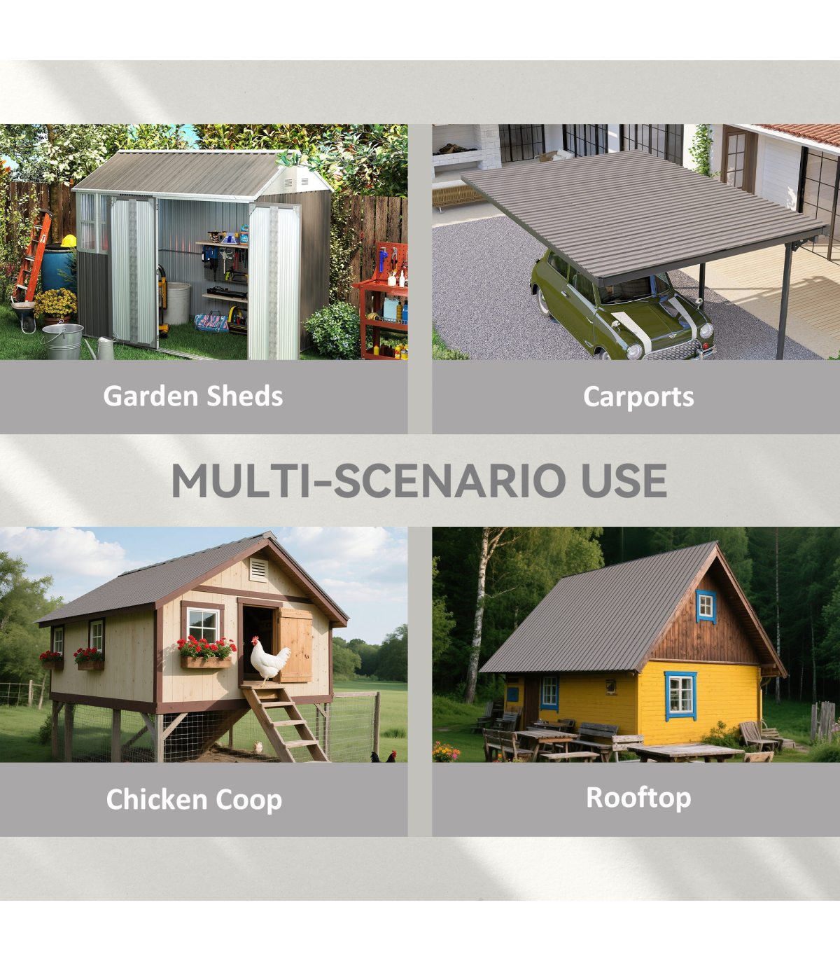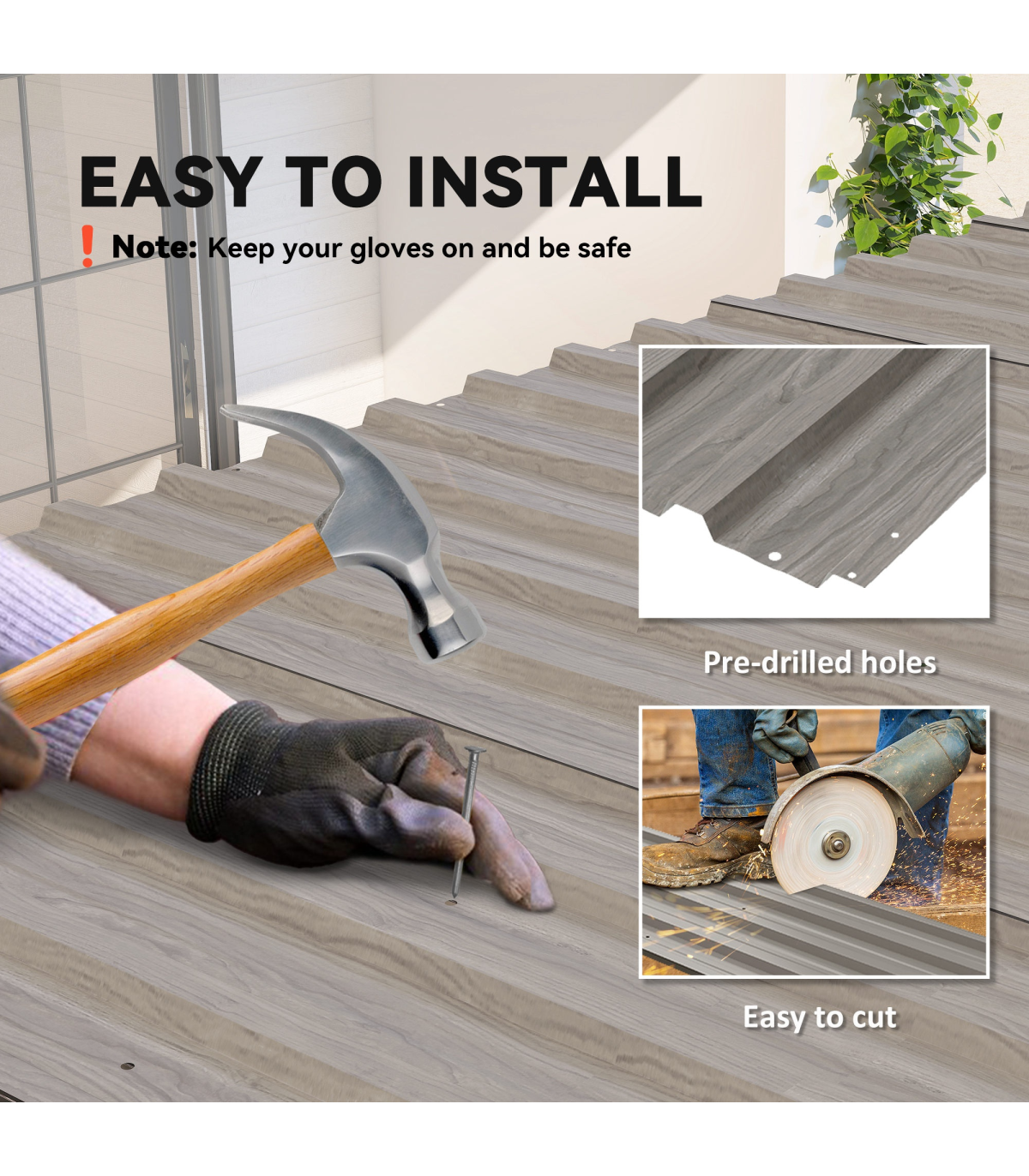 Outsunny Pack of 12 Metal Roofing Sheets for Greenhouse, Grey Wood Effect