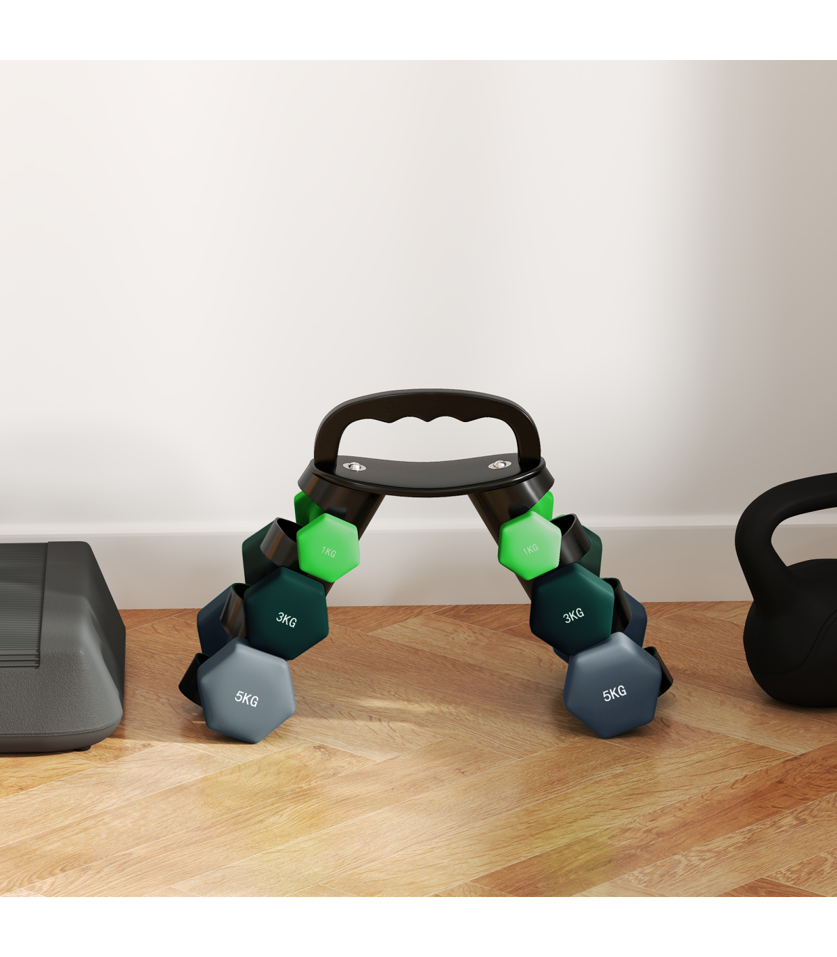 ? Rotate the dumbbell stand to transform it into a kettlebell