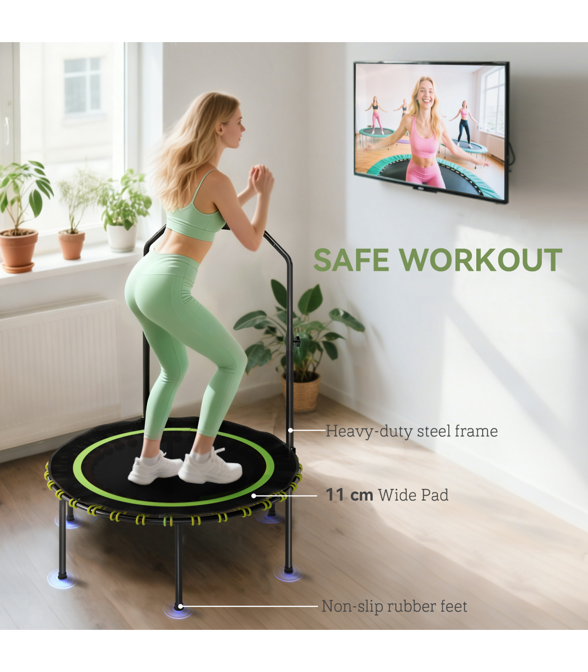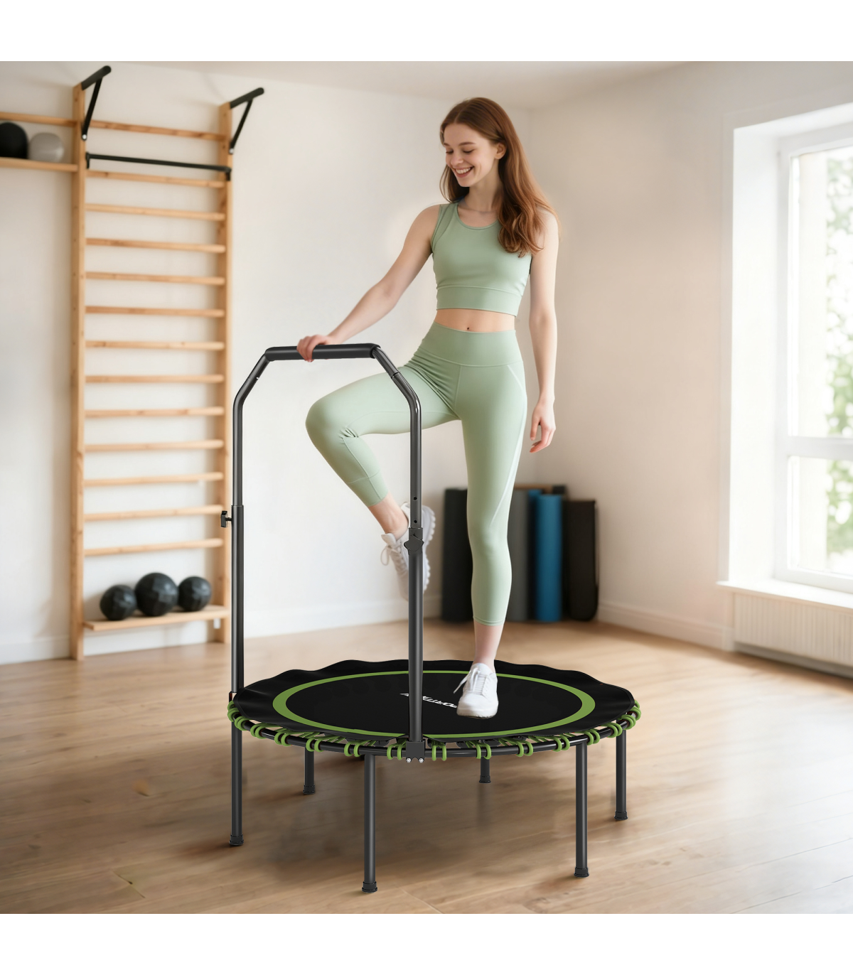 SPORTNOW 40'' Foldable Fitness Trampoline Rebounder with Handle, Green