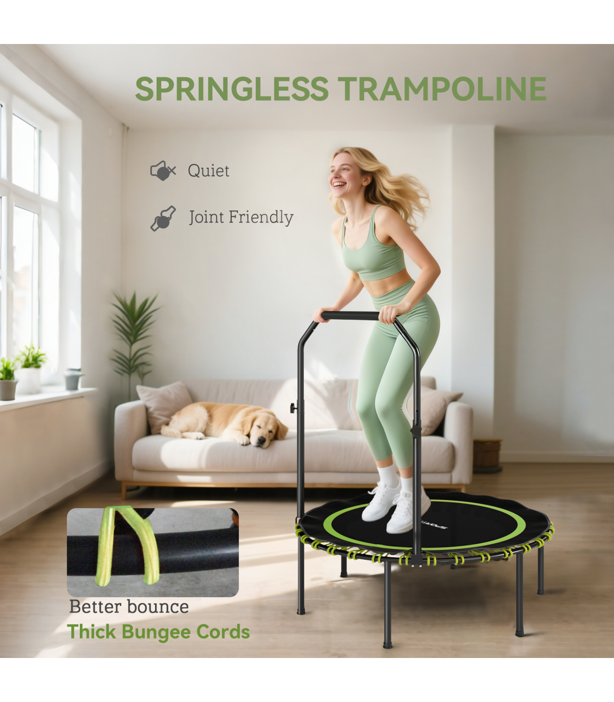 ● 28 high-elastic bungee cords reduce joint impact for comfortable, safe workouts