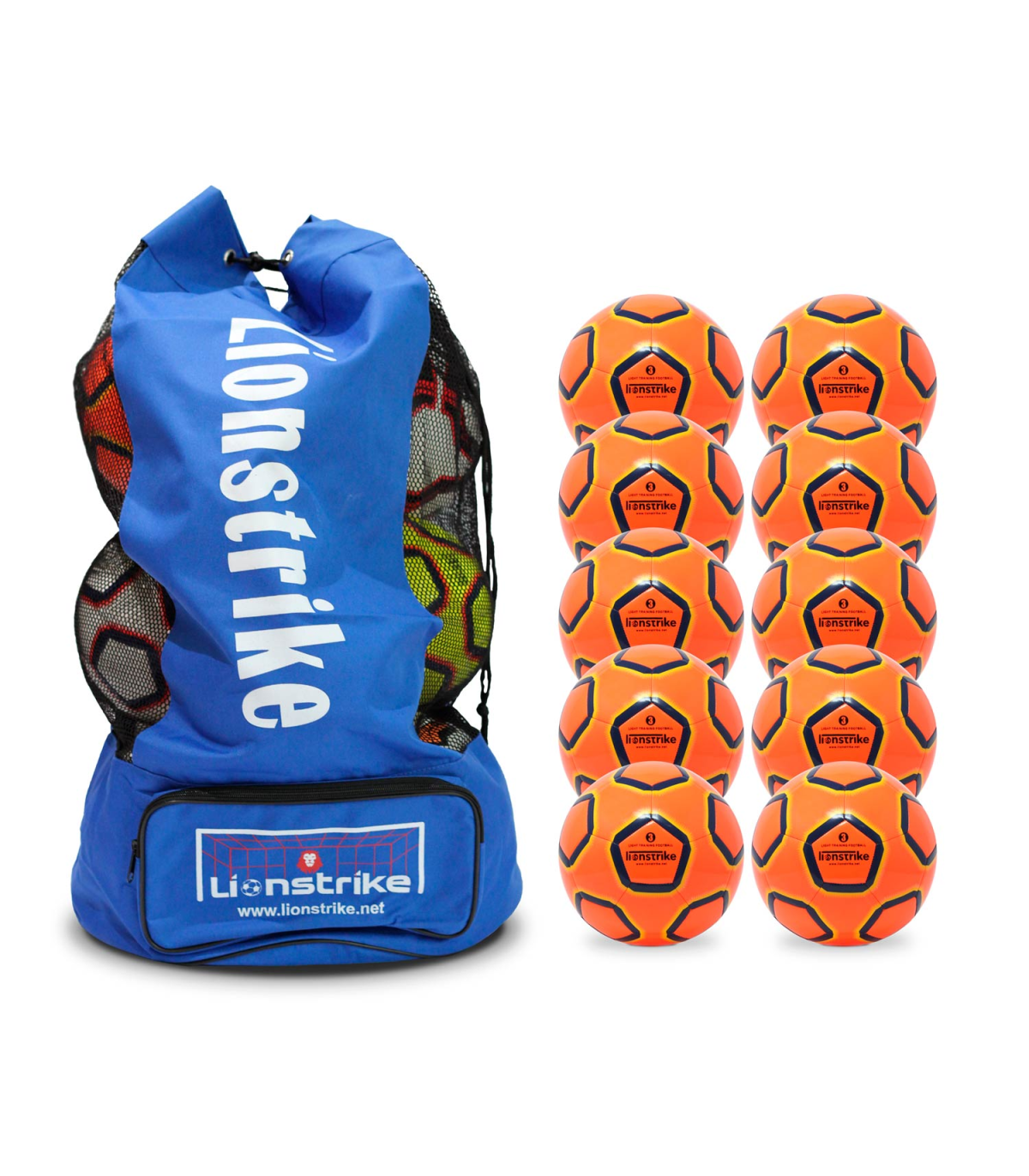 You can now buy a high value multipack of Lionstrike Lite Training Footballs, which includes the footballs and also a high quality Lionstrike football sack in which to store them.