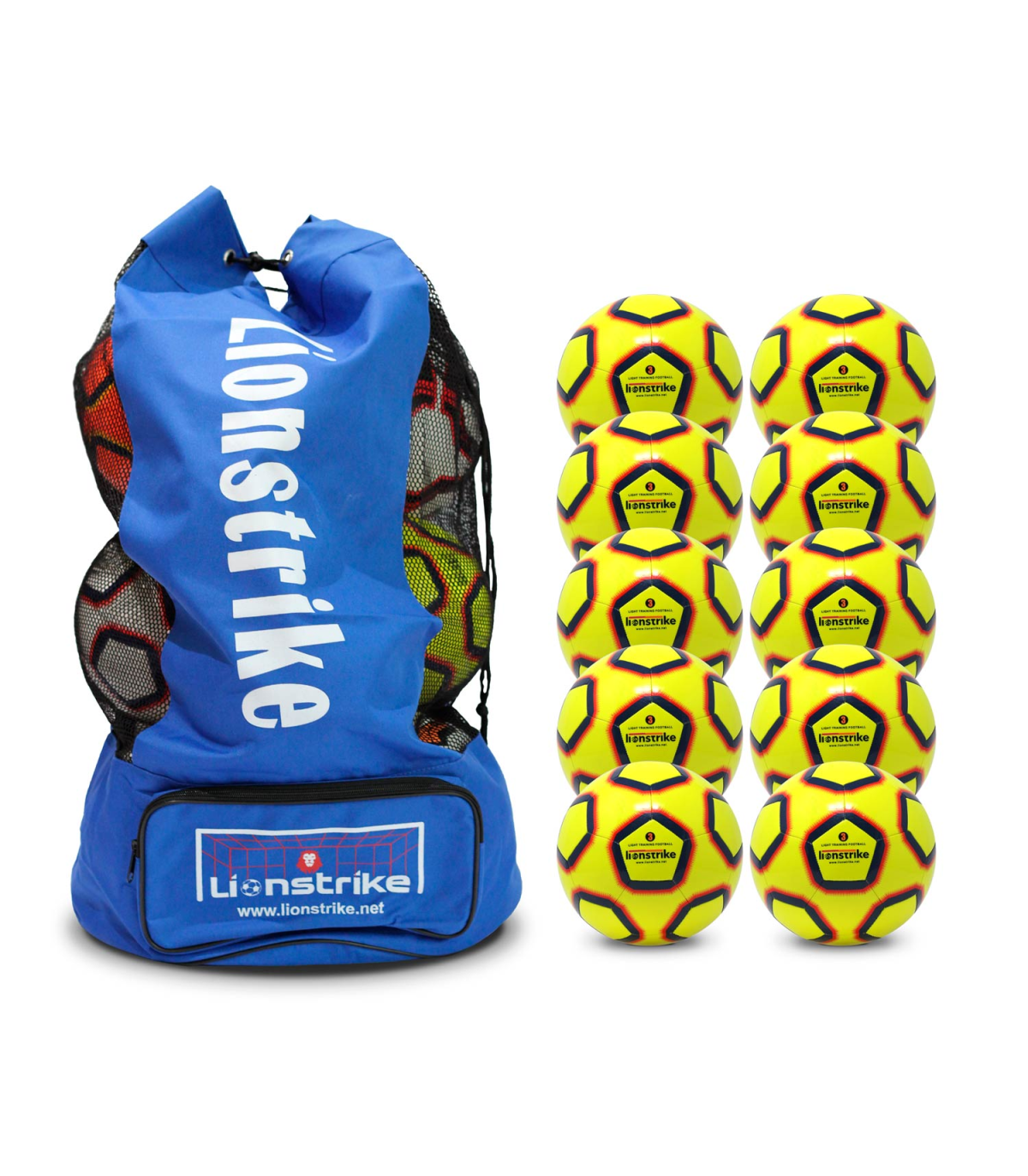 You can now buy a high value multipack of Lionstrike Lite Training Footballs, which includes the footballs and also a high quality Lionstrike football sack in which to store them.