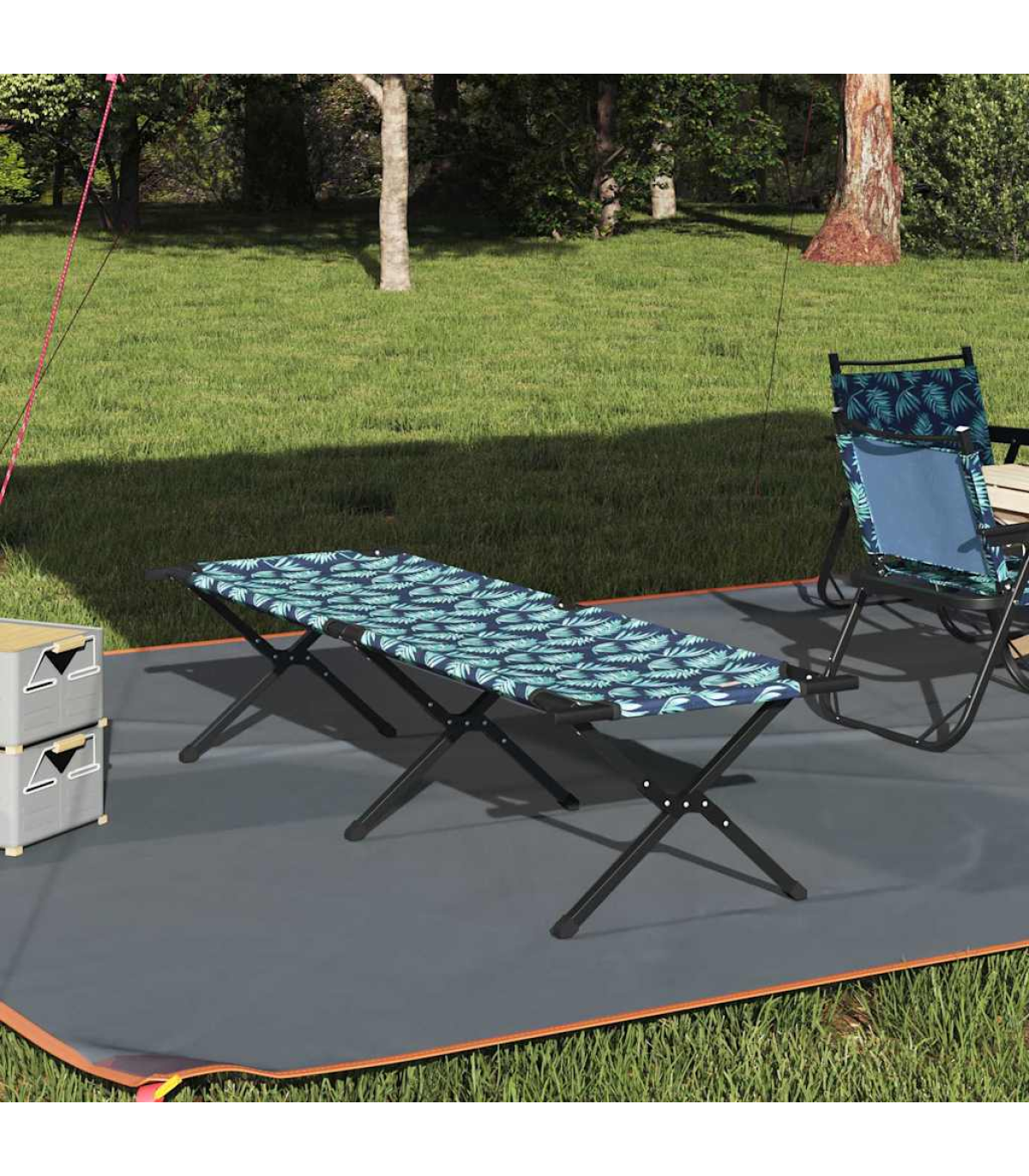 vidaXL Folding Camping Bed Folding Manual Leaf pattern Oxford fabric