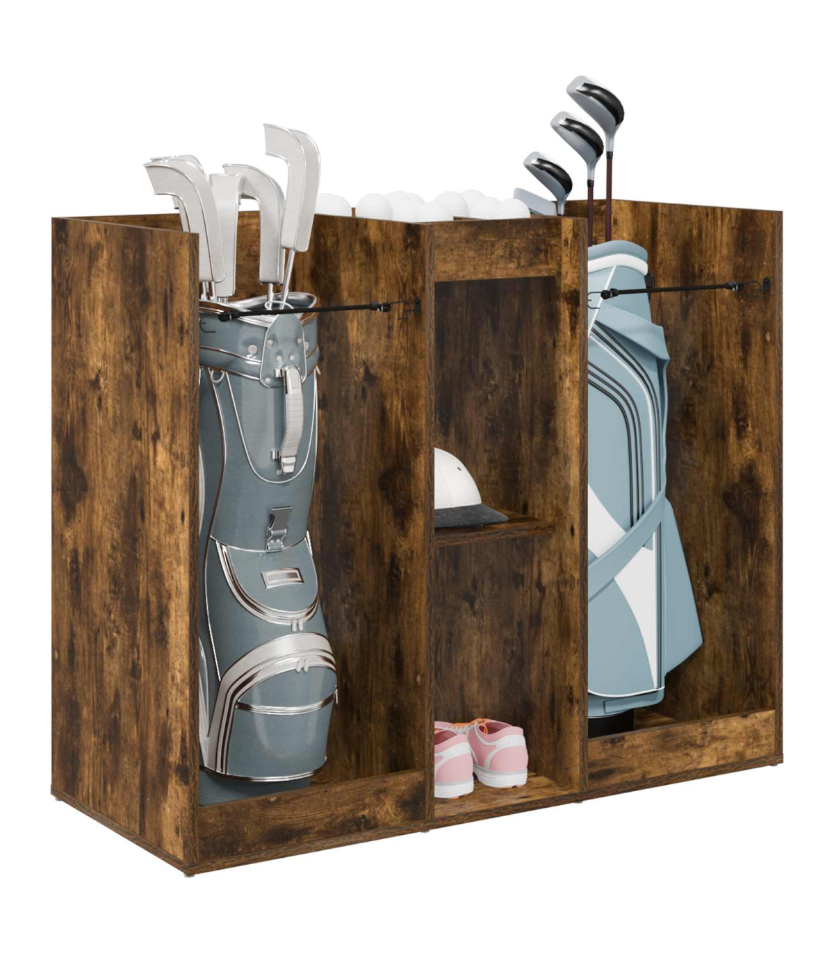 This Wooden Golf Cabinet is a refined choice for those seeking ample storage within a modern aesthetic. Expertly designed for indoor use, it brings a sophisticated touch to any garage or room setting. Sculpted to a simple rectangular shape, this piece boasts a smooth, opaque finish that complements its streamlined silhouette. With its substantial presence, it efficiently stores all your golfing essentials while maintaining a neat exterior, effortlessly blending style and functionality into one cohesive design. Materials: Crafted meticulously from wood, this golf cabinet serves as a robust and elegant storage solution. The natural wood material ensures a lasting presence while adding warmth and character to your interior space. This choice of material is lauded for its durability and sustainability, enhancing both the physical appearance and longevity of the unit. Included Components: Features free-standing shelves crafted from wood, providing reliable support for your belongings. The metal back offers a finished, presentable appearance, allowing for placement in any part of your interior where aesthetics matter. Powder-coated metal frame finishes enrich the cabinet's resilience, promising sturdiness while preventing common issues like . Features /Function /Design: Designed with ample storage capabilities, it encompasses numerous shelving options, perfect for organizing golf accessories and more. The opaque design ensures contents remain discreetly hidden, while its modern style aligns with varied home decors. It's a functional asset for maintaining order and highlighting sophisticated taste. Recommended Uses: Ideal for garages or any indoor space where versatile storage is needed. Whether used for organizing golfing gear or other equipment, it seamlessly integrates into rooms requiring modernist touches. Its utility extends beyond sports, accommodating various household storage needs. Care &Maintenance: To maintain its refined look, use a soft, dry cloth to clean the surface regularly. Avoid exposure to harsh chemicals, ensuring the wood retains its natural luster. Minimal maintenance preserves the cabinet's stylish appearance and structural integrity over time.
