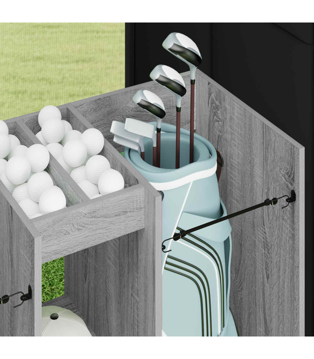This Wooden Golf Cabinet is a refined choice for those seeking ample storage within a modern aesthetic. Expertly designed for indoor use, it brings a sophisticated touch to any garage or room setting. Sculpted to a simple rectangular shape, this piece boasts a smooth, opaque finish that complements its streamlined silhouette. With its substantial presence, it efficiently stores all your golfing essentials while maintaining a neat exterior, effortlessly blending style and functionality into one cohesive design. Materials: Crafted meticulously from wood, this golf cabinet serves as a robust and elegant storage solution. The natural wood material ensures a lasting presence while adding warmth and character to your interior space. This choice of material is lauded for its durability and sustainability, enhancing both the physical appearance and longevity of the unit. Included Components: Features free-standing shelves crafted from wood, providing reliable support for your belongings. The metal back offers a finished, presentable appearance, allowing for placement in any part of your interior where aesthetics matter. Powder-coated metal frame finishes enrich the cabinet's resilience, promising sturdiness while preventing common issues like . Features /Function /Design: Designed with ample storage capabilities, it encompasses numerous shelving options, perfect for organizing golf accessories and more. The opaque design ensures contents remain discreetly hidden, while its modern style aligns with varied home decors. It's a functional asset for maintaining order and highlighting sophisticated taste. Recommended Uses: Ideal for garages or any indoor space where versatile storage is needed. Whether used for organizing golfing gear or other equipment, it seamlessly integrates into rooms requiring modernist touches. Its utility extends beyond sports, accommodating various household storage needs. Care &Maintenance: To maintain its refined look, use a soft, dry cloth to clean the surface regularly. Avoid exposure to harsh chemicals, ensuring the wood retains its natural luster. Minimal maintenance preserves the cabinet's stylish appearance and structural integrity over time.