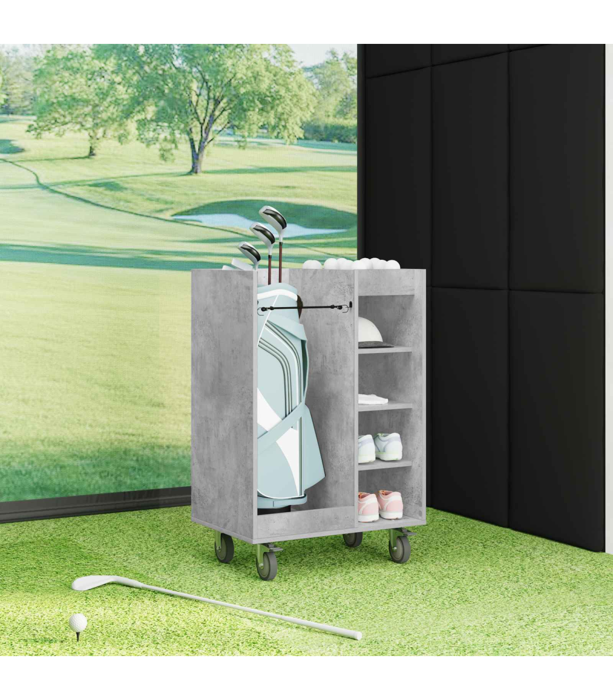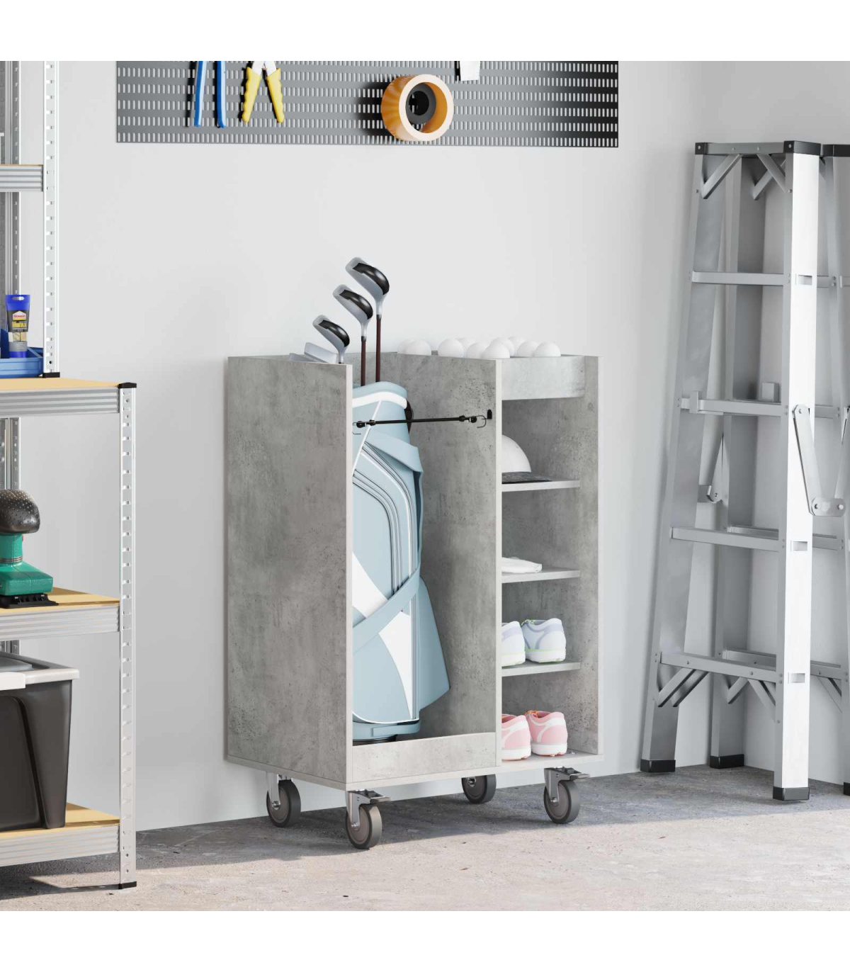 vidaXL Golf Cabinet with Wheel Plain Concrete Grey 65 x 45 x 98 cm