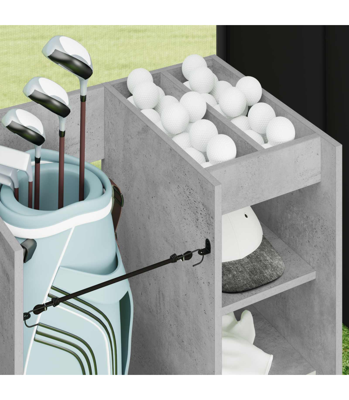 This Wooden Golf Cabinet is a refined choice for those seeking ample storage within a modern aesthetic. Expertly designed for indoor use, it brings a sophisticated touch to any garage or room setting. Sculpted to a simple rectangular shape, this piece boasts a smooth, opaque finish that complements its streamlined silhouette. With its substantial presence, it efficiently stores all your golfing essentials while maintaining a neat exterior, effortlessly blending style and functionality into one cohesive design. Materials: Crafted meticulously from wood, this golf cabinet serves as a robust and elegant storage solution. The natural wood material ensures a lasting presence while adding warmth and character to your interior space. This choice of material is lauded for its durability and sustainability, enhancing both the physical appearance and longevity of the unit. Included Components: Features free-standing shelves crafted from wood, providing reliable support for your belongings. The metal back offers a finished, presentable appearance, allowing for placement in any part of your interior where aesthetics matter. Powder-coated metal frame finishes enrich the cabinet's resilience, promising sturdiness while preventing common issues like . Features /Function /Design: Designed with ample storage capabilities, it encompasses numerous shelving options, perfect for organizing golf accessories and more. The opaque design ensures contents remain discreetly hidden, while its modern style aligns with varied home decors. It's a functional asset for maintaining order and highlighting sophisticated taste. Recommended Uses: Ideal for garages or any indoor space where versatile storage is needed. Whether used for organizing golfing gear or other equipment, it seamlessly integrates into rooms requiring modernist touches. Its utility extends beyond sports, accommodating various household storage needs. Care &Maintenance: To maintain its refined look, use a soft, dry cloth to clean the surface regularly. Avoid exposure to harsh chemicals, ensuring the wood retains its natural luster. Minimal maintenance preserves the cabinet's stylish appearance and structural integrity over time.