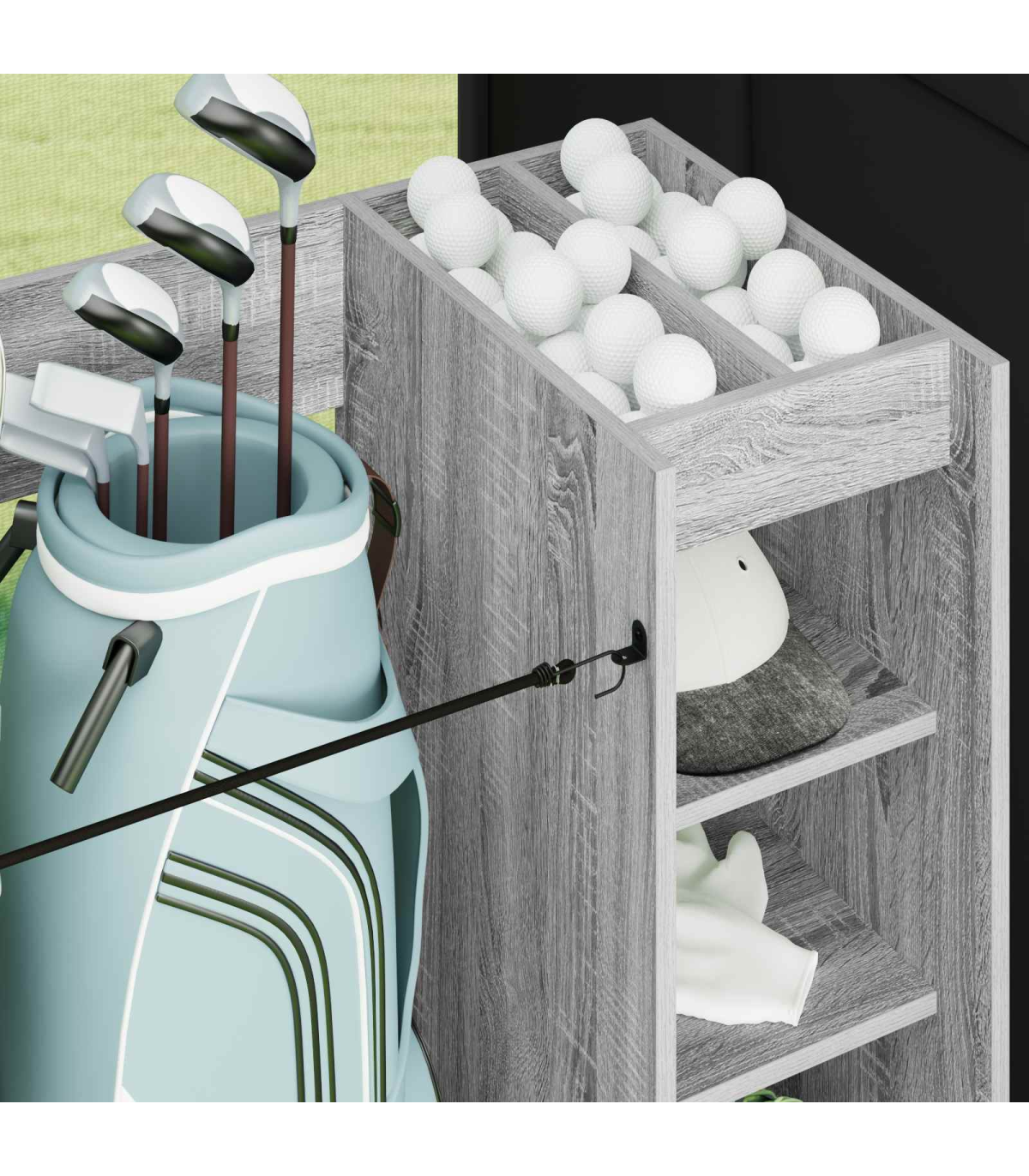 This Wooden Golf Cabinet is a refined choice for those seeking ample storage within a modern aesthetic. Expertly designed for indoor use, it brings a sophisticated touch to any garage or room setting. Sculpted to a simple rectangular shape, this piece boasts a smooth, opaque finish that complements its streamlined silhouette. With its substantial presence, it efficiently stores all your golfing essentials while maintaining a neat exterior, effortlessly blending style and functionality into one cohesive design. Materials: Crafted meticulously from wood, this golf cabinet serves as a robust and elegant storage solution. The natural wood material ensures a lasting presence while adding warmth and character to your interior space. This choice of material is lauded for its durability and sustainability, enhancing both the physical appearance and longevity of the unit. Included Components: Features free-standing shelves crafted from wood, providing reliable support for your belongings. The metal back offers a finished, presentable appearance, allowing for placement in any part of your interior where aesthetics matter. Powder-coated metal frame finishes enrich the cabinet's resilience, promising sturdiness while preventing common issues like . Features /Function /Design: Designed with ample storage capabilities, it encompasses numerous shelving options, perfect for organizing golf accessories and more. The opaque design ensures contents remain discreetly hidden, while its modern style aligns with varied home decors. It's a functional asset for maintaining order and highlighting sophisticated taste. Recommended Uses: Ideal for garages or any indoor space where versatile storage is needed. Whether used for organizing golfing gear or other equipment, it seamlessly integrates into rooms requiring modernist touches. Its utility extends beyond sports, accommodating various household storage needs. Care &Maintenance: To maintain its refined look, use a soft, dry cloth to clean the surface regularly. Avoid exposure to harsh chemicals, ensuring the wood retains its natural luster. Minimal maintenance preserves the cabinet's stylish appearance and structural integrity over time.
