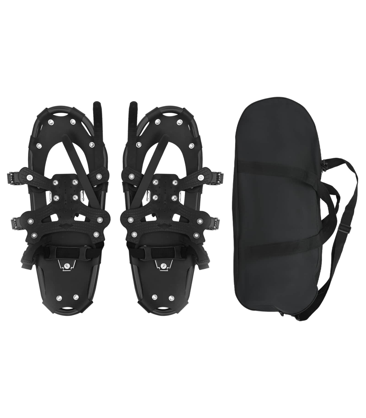 This 3 IN 1 Modern Snowshoe set with Hiking Poles is tailored for winter enthusiasts who crave adventure amidst snow. Emphasizing simplicity and functionality, it promises an effortless glide over snow-blanketed landscapes, making it perfect for outdoor aficionados. With its modern style, it attracts both beginner and expert snowshoe hikers looking for ease, agility, and thrilling winter expeditions. Aluminum Frame &Polyethylene Deck: Engineered for durability, the aluminum frame and polyethylene deck withstand the harsh outdoors, providing steadfast performance during snow hikes. Their resistance to cold ensures stability and strength, allowing enthusiasts to navigate through snow effortlessly. Complete Set: The package comes with a pair of snowshoes, two adjustable hiking poles, and a carrying bag, making it ideal for those seeking a full snow trekking kit in one purchase. Each component is designed for ease of transport and storage, ensuring you are adventure-ready at all times. Cold-resistant Features: The HDPE deck is crafted for cold settings, while the adjustable heel strap offers perfect foot alignment. This ensures your feet remain in place at all times for uninterrupted trekking, thus promoting safety and control on all terrains. Versatile Uses: Whether scaling mountaintops or trailing through secluded woods, it's built to accommodate shoe sizes 38 to 48 with a ratchet system for readjustment, lending flexibility to multiple users. Easy Maintenance: Store the gear in cool, dry places and wipe it with a dry cloth to maintain its pristine condition. Avoid pavement walks to preserve deck integrity and inspect before each seasonal use for sustained functionality.