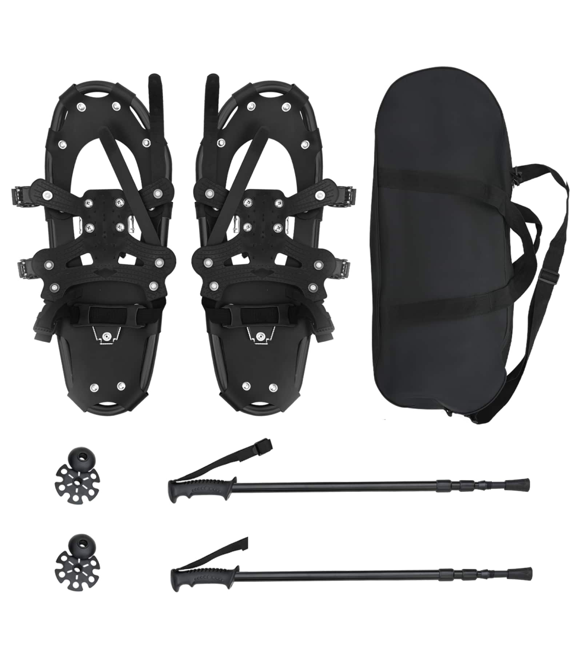 vidaXL 3 in 1 Snowshoes with Hiking Poles Black 21 inches
