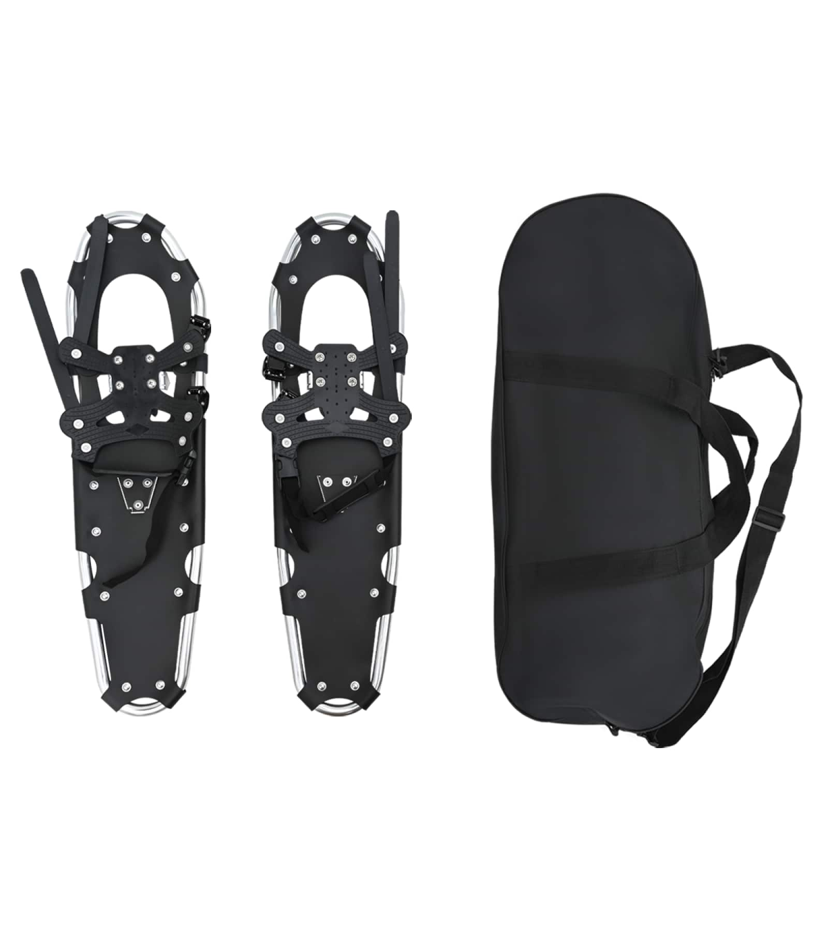 This 3 IN 1 Modern Snowshoe set with Hiking Poles is tailored for winter enthusiasts who crave adventure amidst snow. Emphasizing simplicity and functionality, it promises an effortless glide over snow-blanketed landscapes, making it perfect for outdoor aficionados. With its modern style, it attracts both beginner and expert snowshoe hikers looking for ease, agility, and thrilling winter expeditions. Aluminum Frame &Polyethylene Deck: Engineered for durability, the aluminum frame and polyethylene deck withstand the harsh outdoors, providing steadfast performance during snow hikes. Their resistance to cold ensures stability and strength, allowing enthusiasts to navigate through snow effortlessly. Complete Set: The package comes with a pair of snowshoes, two adjustable hiking poles, and a carrying bag, making it ideal for those seeking a full snow trekking kit in one purchase. Each component is designed for ease of transport and storage, ensuring you are adventure-ready at all times. Cold-resistant Features: The HDPE deck is crafted for cold settings, while the adjustable heel strap offers perfect foot alignment. This ensures your feet remain in place at all times for uninterrupted trekking, thus promoting safety and control on all terrains. Versatile Uses: Whether scaling mountaintops or trailing through secluded woods, it's built to accommodate shoe sizes 38 to 48 with a ratchet system for readjustment, lending flexibility to multiple users. Easy Maintenance: Store the gear in cool, dry places and wipe it with a dry cloth to maintain its pristine condition. Avoid pavement walks to preserve deck integrity and inspect before each seasonal use for sustained functionality.