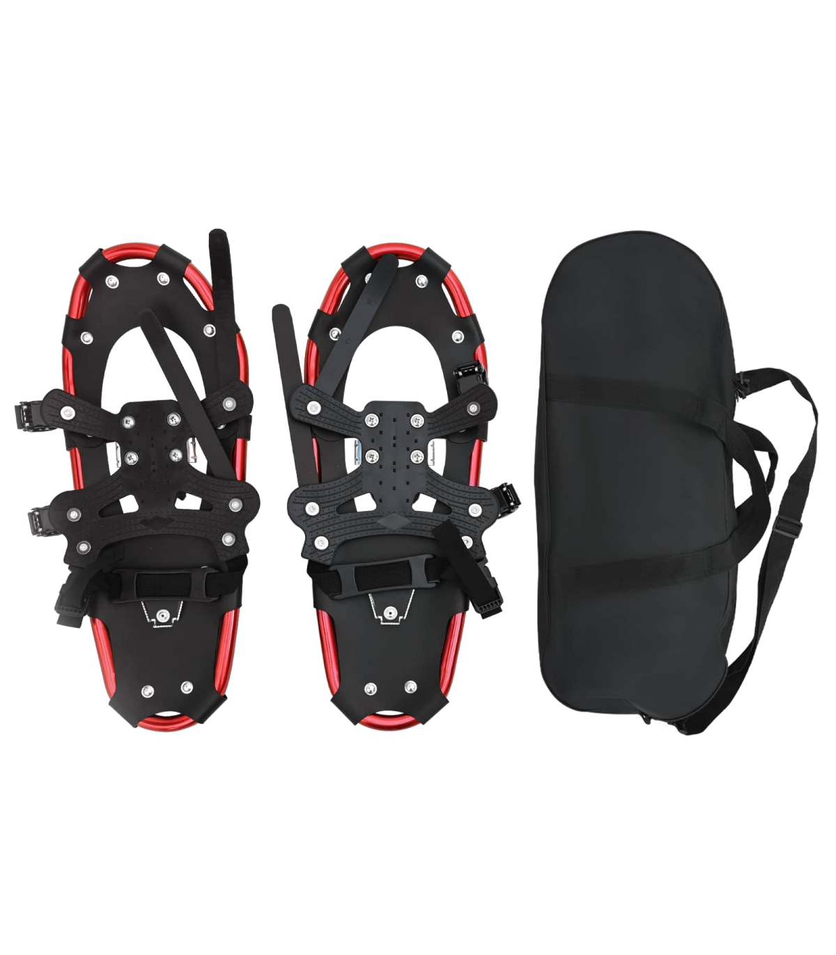 This 3 IN 1 Modern Snowshoe set with Hiking Poles is tailored for winter enthusiasts who crave adventure amidst snow. Emphasizing simplicity and functionality, it promises an effortless glide over snow-blanketed landscapes, making it perfect for outdoor aficionados. With its modern style, it attracts both beginner and expert snowshoe hikers looking for ease, agility, and thrilling winter expeditions. Aluminum Frame &Polyethylene Deck: Engineered for durability, the aluminum frame and polyethylene deck withstand the harsh outdoors, providing steadfast performance during snow hikes. Their resistance to cold ensures stability and strength, allowing enthusiasts to navigate through snow effortlessly. Complete Set: The package comes with a pair of snowshoes, two adjustable hiking poles, and a carrying bag, making it ideal for those seeking a full snow trekking kit in one purchase. Each component is designed for ease of transport and storage, ensuring you are adventure-ready at all times. Cold-resistant Features: The HDPE deck is crafted for cold settings, while the adjustable heel strap offers perfect foot alignment. This ensures your feet remain in place at all times for uninterrupted trekking, thus promoting safety and control on all terrains. Versatile Uses: Whether scaling mountaintops or trailing through secluded woods, it's built to accommodate shoe sizes 38 to 48 with a ratchet system for readjustment, lending flexibility to multiple users. Easy Maintenance: Store the gear in cool, dry places and wipe it with a dry cloth to maintain its pristine condition. Avoid pavement walks to preserve deck integrity and inspect before each seasonal use for sustained functionality.