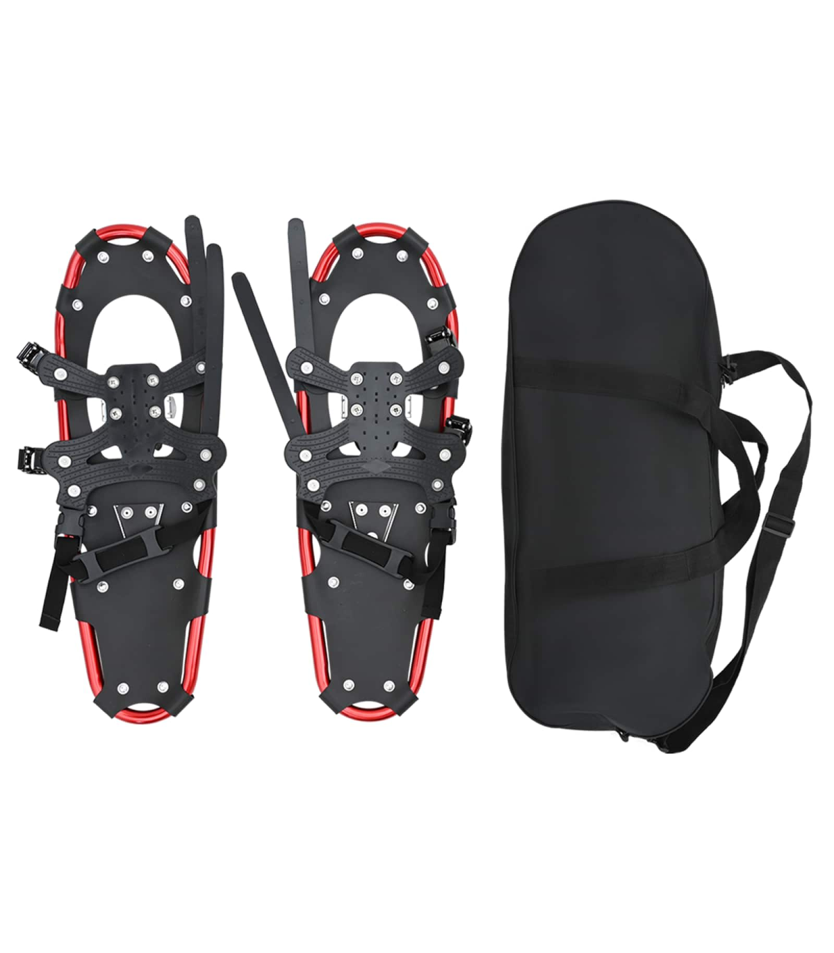 This 3 IN 1 Modern Snowshoe set with Hiking Poles is tailored for winter enthusiasts who crave adventure amidst snow. Emphasizing simplicity and functionality, it promises an effortless glide over snow-blanketed landscapes, making it perfect for outdoor aficionados. With its modern style, it attracts both beginner and expert snowshoe hikers looking for ease, agility, and thrilling winter expeditions. Aluminum Frame &Polyethylene Deck: Engineered for durability, the aluminum frame and polyethylene deck withstand the harsh outdoors, providing steadfast performance during snow hikes. Their resistance to cold ensures stability and strength, allowing enthusiasts to navigate through snow effortlessly. Complete Set: The package comes with a pair of snowshoes, two adjustable hiking poles, and a carrying bag, making it ideal for those seeking a full snow trekking kit in one purchase. Each component is designed for ease of transport and storage, ensuring you are adventure-ready at all times. Cold-resistant Features: The HDPE deck is crafted for cold settings, while the adjustable heel strap offers perfect foot alignment. This ensures your feet remain in place at all times for uninterrupted trekking, thus promoting safety and control on all terrains. Versatile Uses: Whether scaling mountaintops or trailing through secluded woods, it's built to accommodate shoe sizes 38 to 48 with a ratchet system for readjustment, lending flexibility to multiple users. Easy Maintenance: Store the gear in cool, dry places and wipe it with a dry cloth to maintain its pristine condition. Avoid pavement walks to preserve deck integrity and inspect before each seasonal use for sustained functionality.