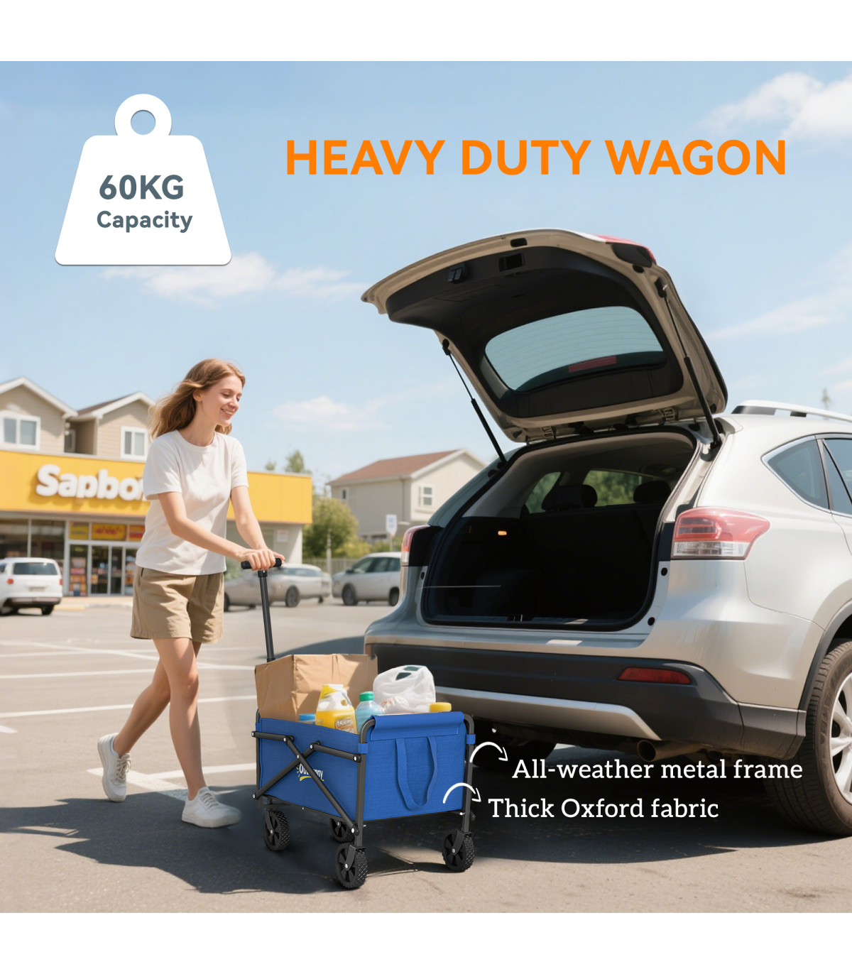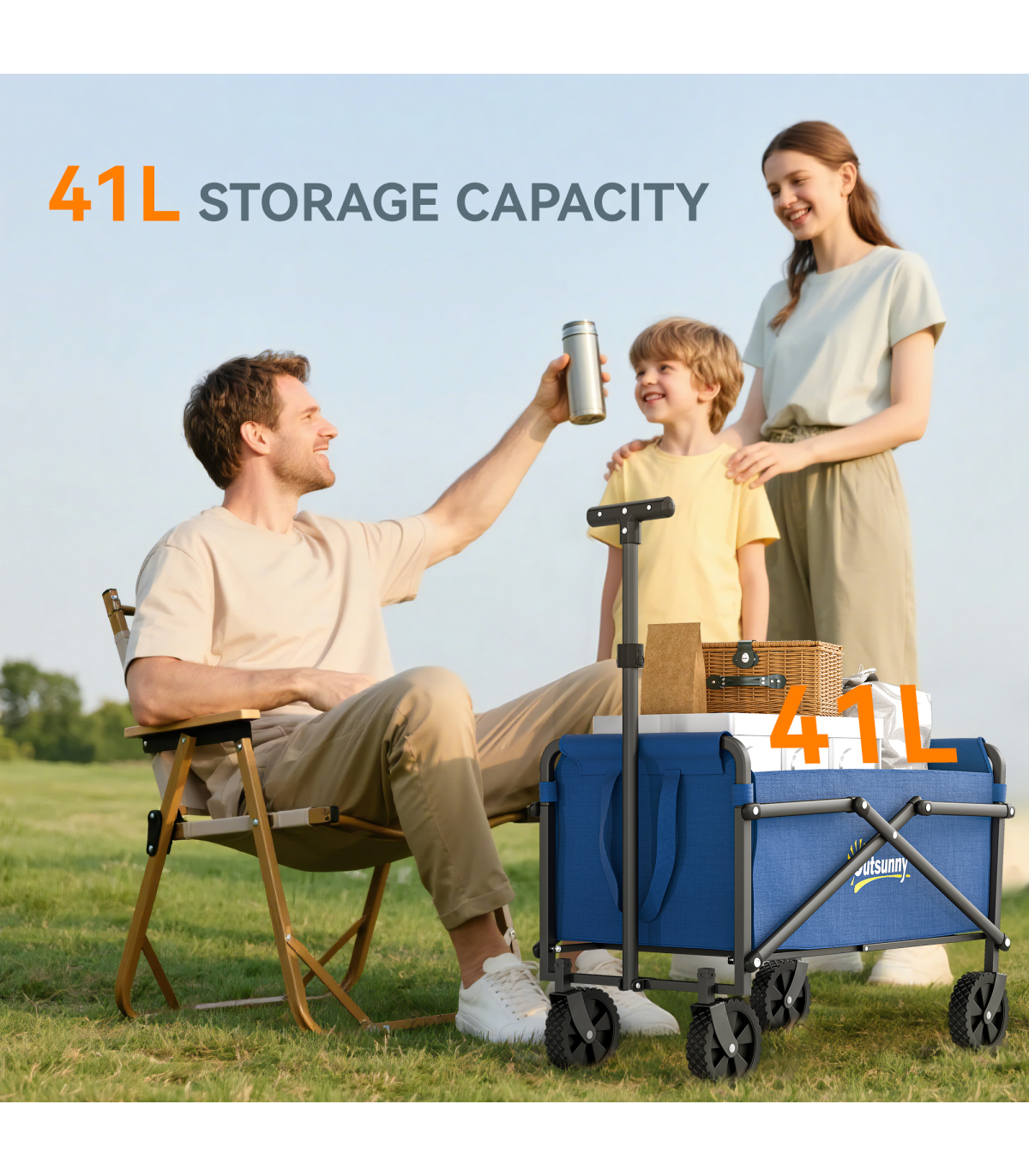 Outsunny 41L Festival Trolley, 60kg Heavy Duty Folding Trolley Cart, Blue