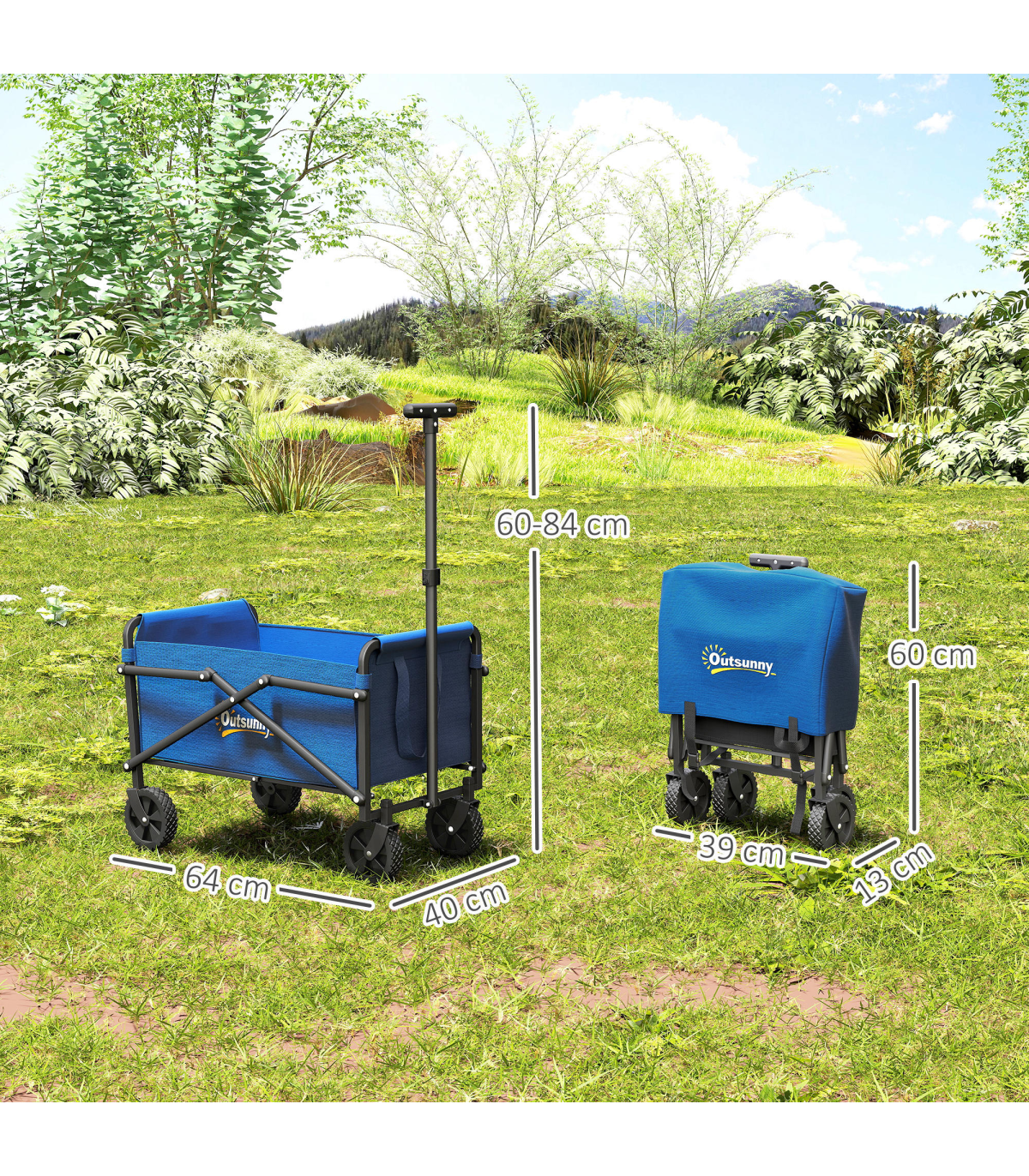Discover the convenience of the Outsunny Garden Cart, a versatile trolley on wheels designed for every outdoor adventure. With a spacious 41 L cargo bag and robust 60 kg capacity, it's great as a festival trolley or camping trolley. Crafted from splash-resistant Oxford fabric and a powder-coated frame, this foldable cart is built for durability and ease.