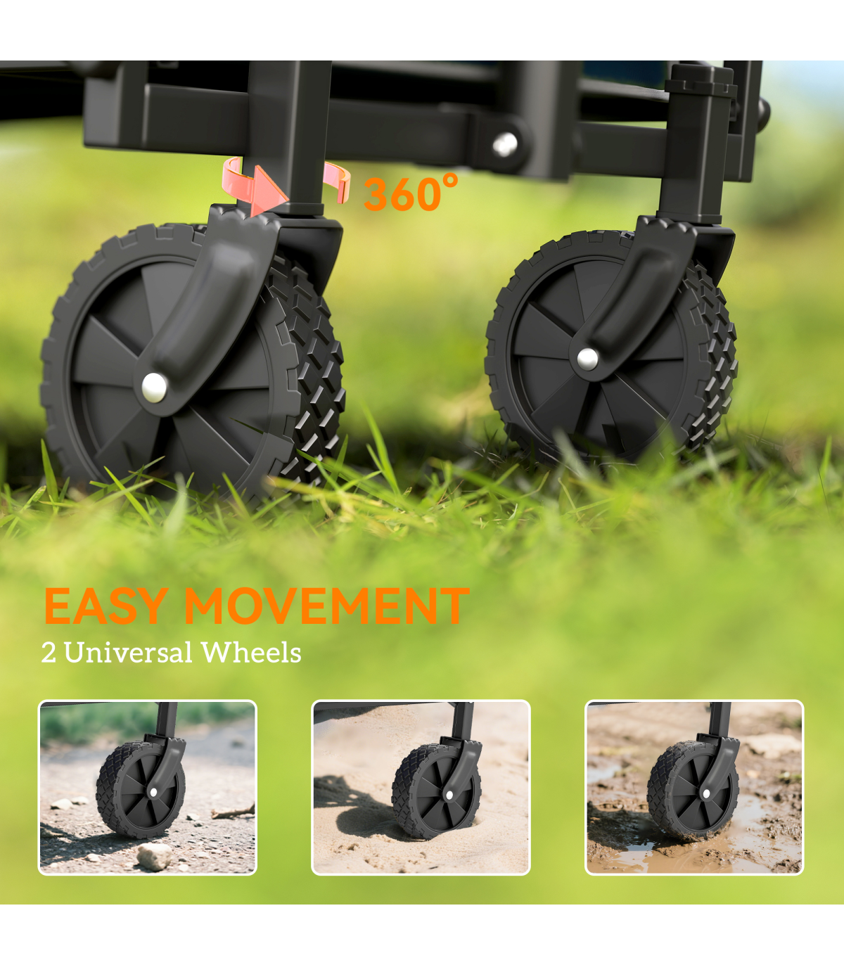? Two universal wheels ensure smooth movement on all terrains