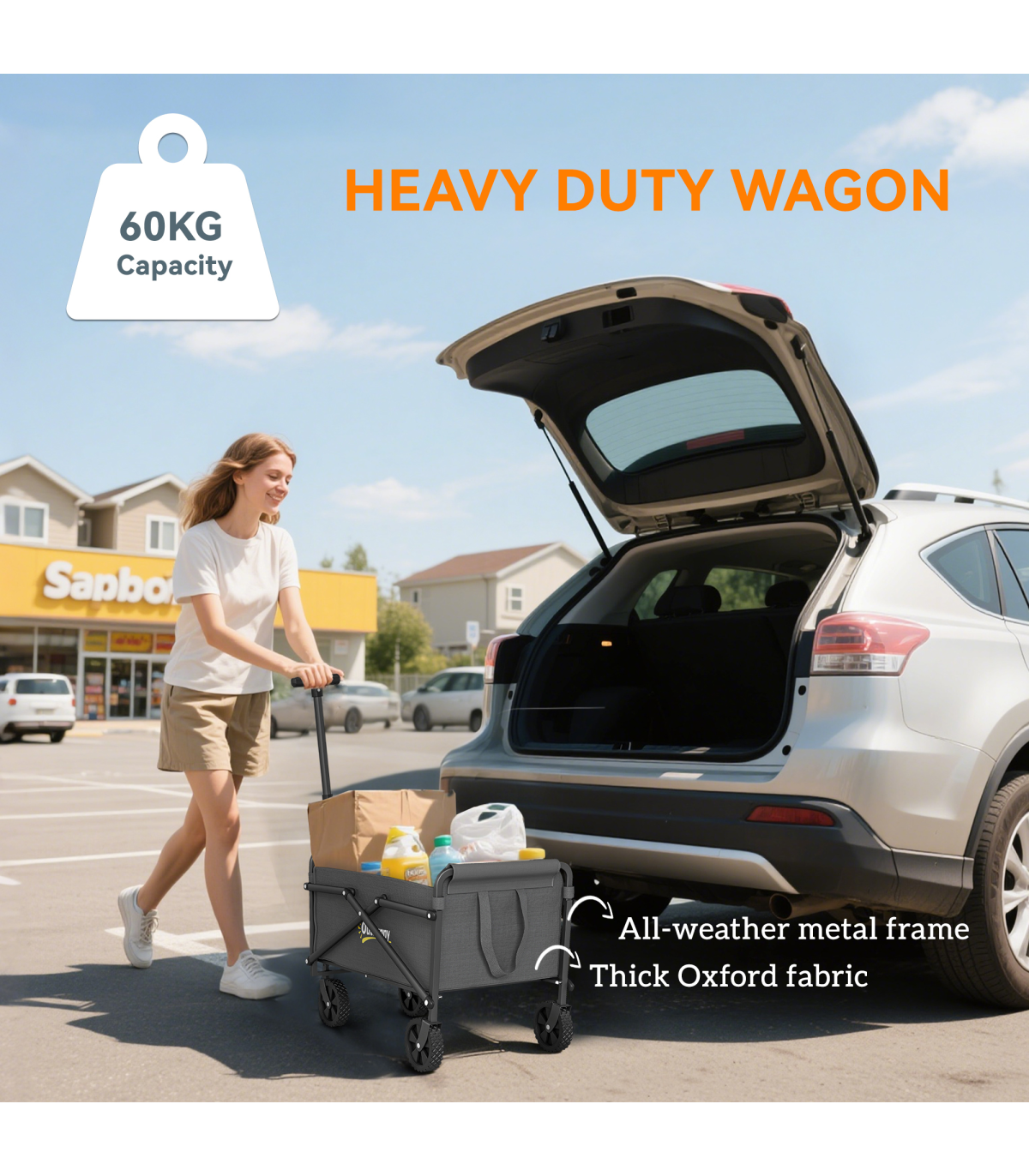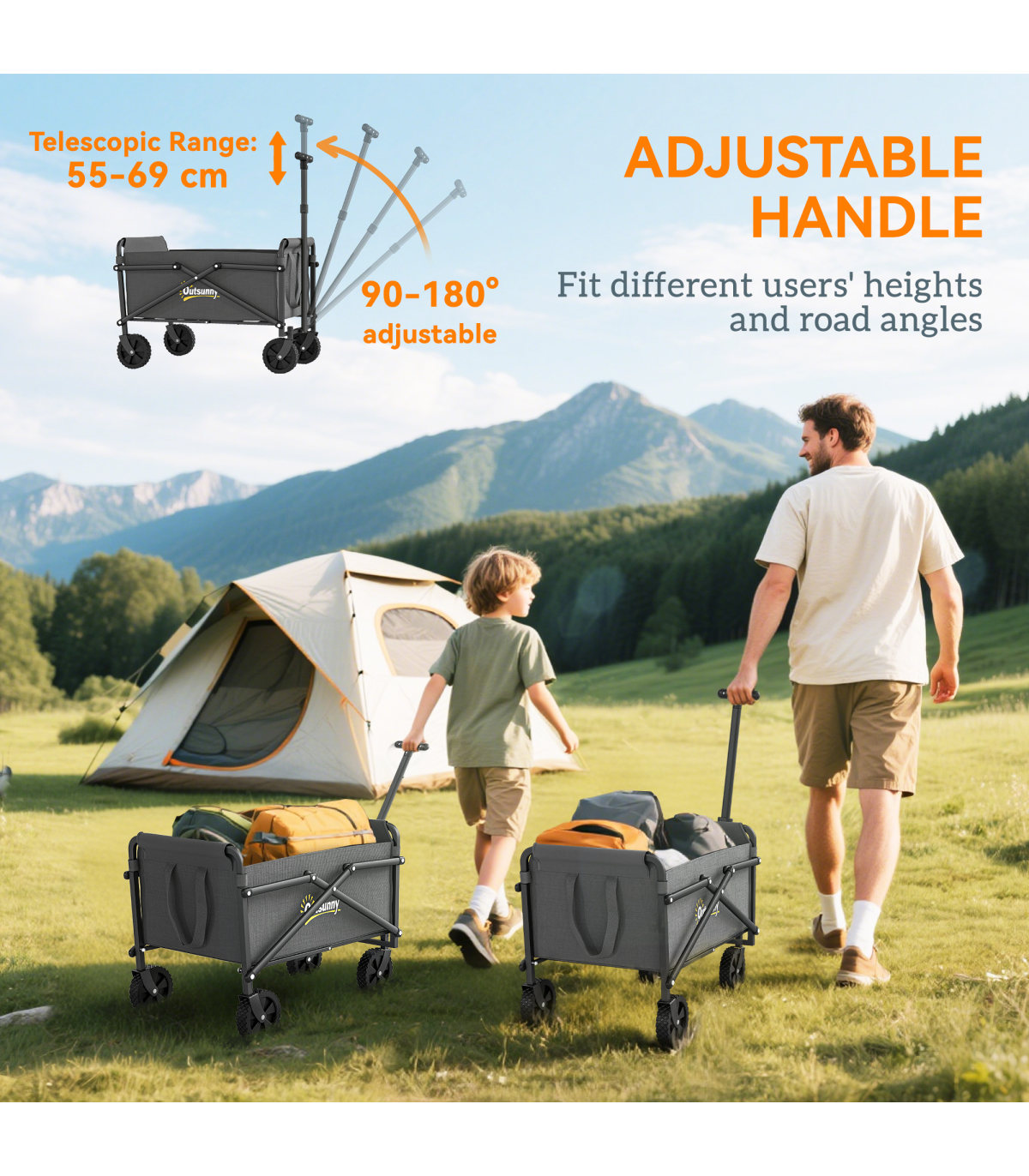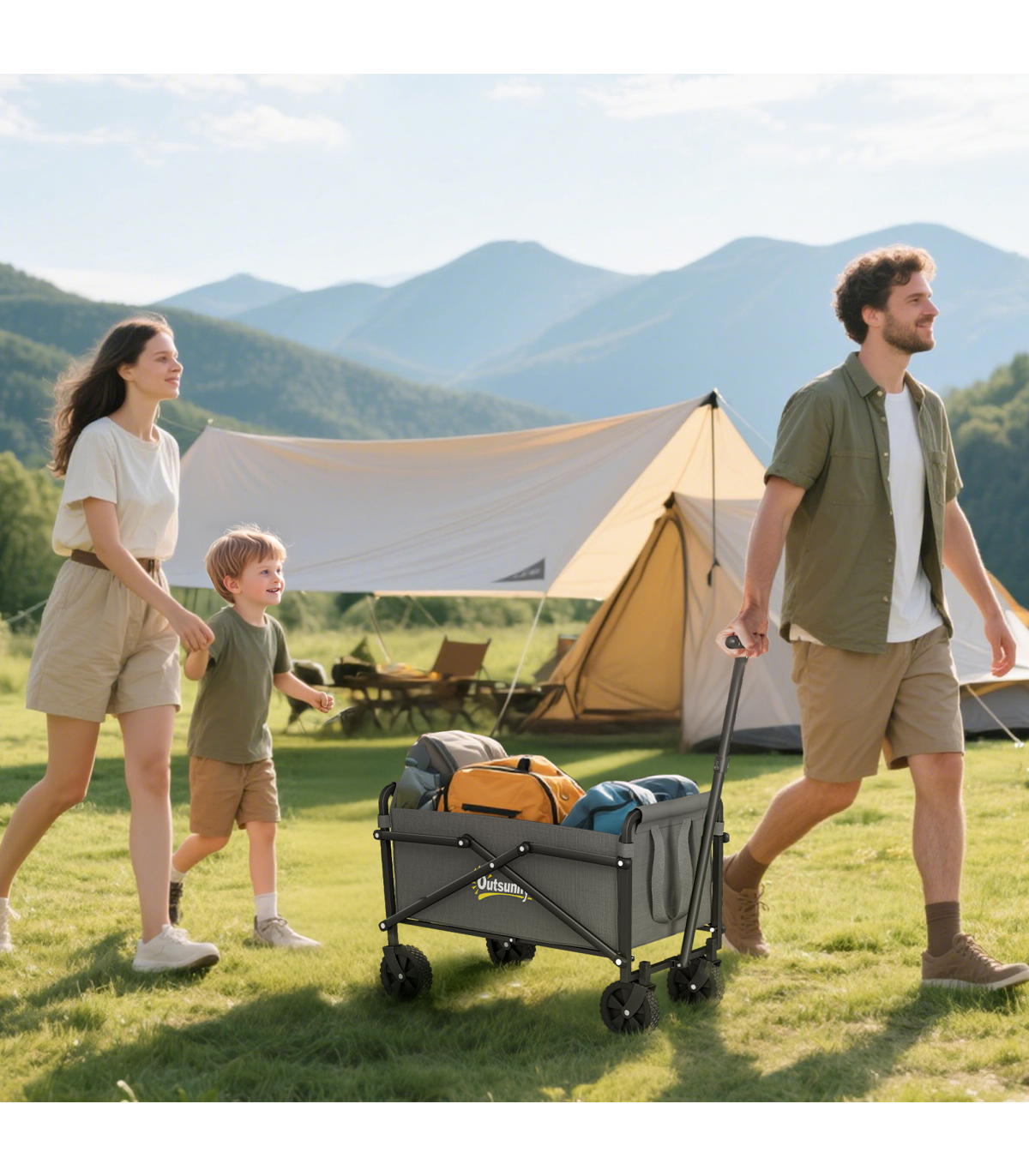Discover the convenience of the Outsunny Garden Cart, a versatile trolley on wheels designed for every outdoor adventure. With a spacious 41 L cargo bag and robust 60 kg capacity, it's great as a festival trolley or camping trolley. Crafted from splash-resistant Oxford fabric and a powder-coated frame, this foldable cart is built for durability and ease.