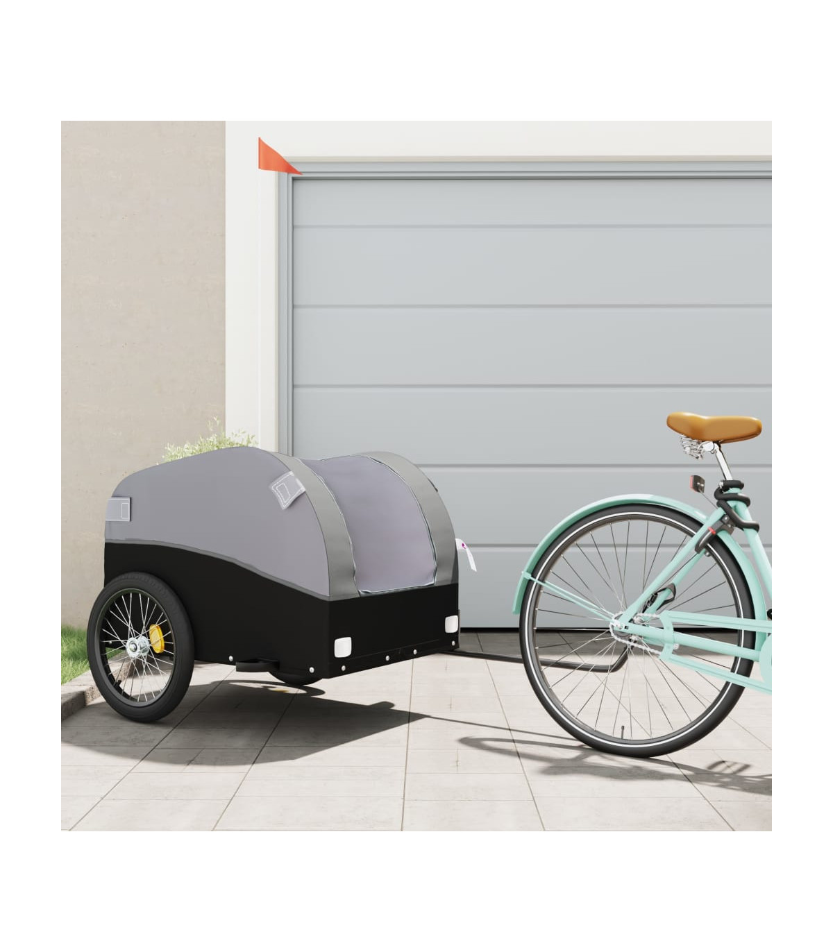 This versatile and sturdy bike trailer will be ideal for transporting heavy goods thanks to its maximum load capacity of 30 kg. Sturdy material: Iron is a strong and hard material. It's a solid favourite in industrial and furniture construction. Made of iron, this bicycle cargo trailer is very sturdy and durable.Practical design: This bike cart with a maximum load capacity of 30 kg, is perfect for hauling heavy goods like luggage, plants, tools or groceries.Considerate design: The bike trailer has a tow bar that makes it easy to connect it to a bicycle. At the same time, a safety flag is included for extra visibility.