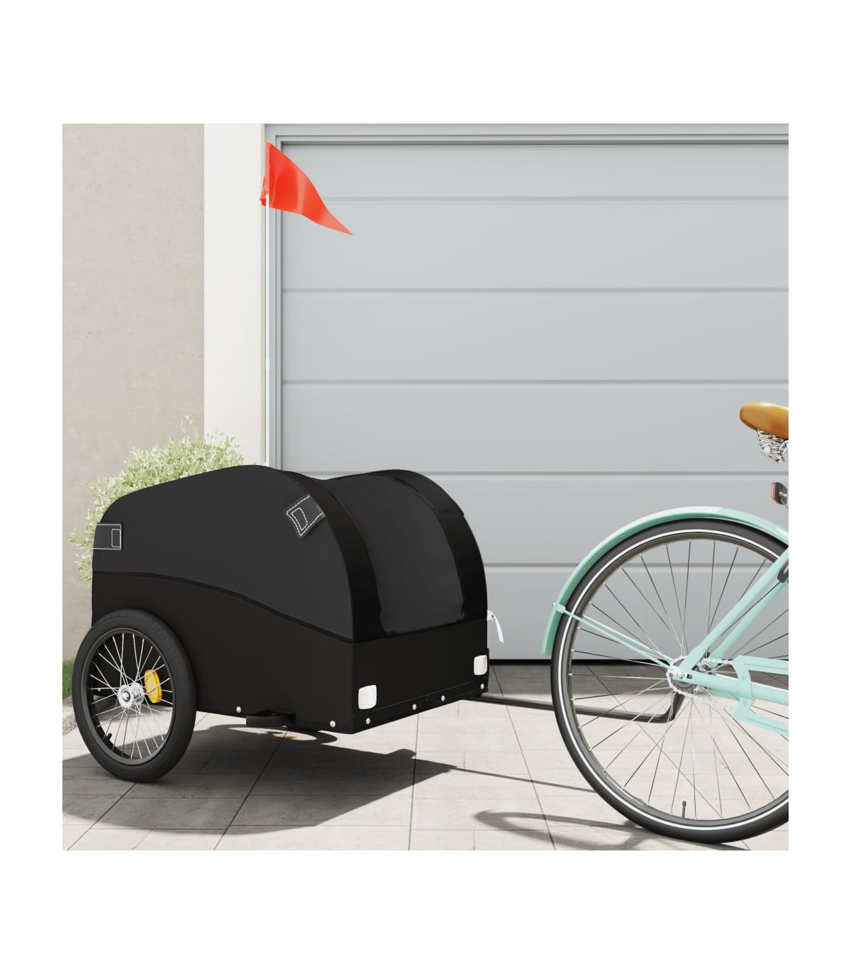 This versatile and sturdy bike trailer will be ideal for transporting heavy goods thanks to its maximum load capacity of 30 kg. Sturdy material: Iron is a strong and hard material. It's a solid favourite in industrial and furniture construction. Made of iron, this bicycle cargo trailer is very sturdy and durable.Practical design: This bike cart with a maximum load capacity of 30 kg, is perfect for hauling heavy goods like luggage, plants, tools or groceries.Considerate design: The bike trailer has a tow bar that makes it easy to connect it to a bicycle. At the same time, a safety flag is included for extra visibility.