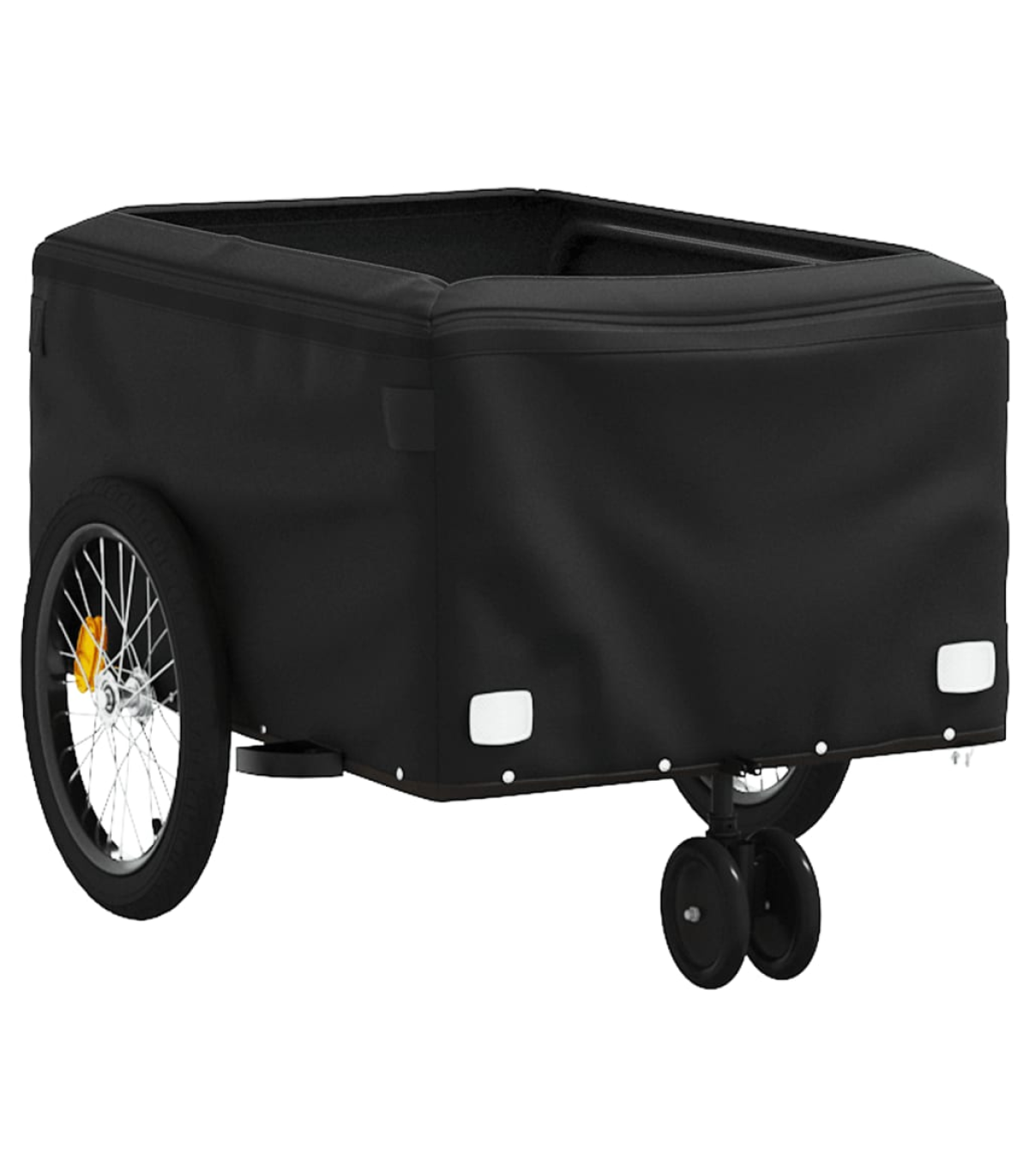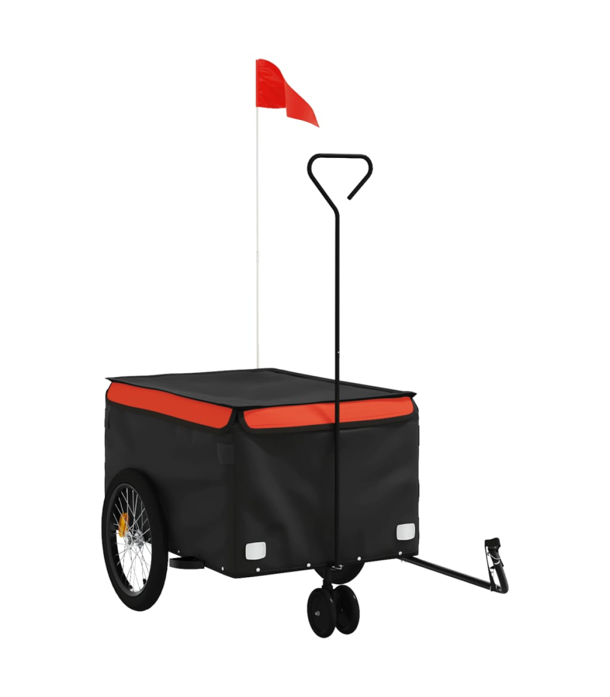 This versatile and sturdy bike trailer will be ideal for transporting heavy goods thanks to its maximum load capacity of 30 kg. Sturdy material: Iron is a strong and hard material. It's a solid favourite in industrial and furniture construction. Made of iron, this bicycle cargo trailer is very sturdy and durable.Practical design: This bike cart with a maximum load capacity of 45 kg, is perfect for hauling heavy goods like luggage, plants, tools or groceries.Considerate design: The bike trailer has a tow bar that makes it easy to connect it to a bicycle. At the same time, a safety flag is included for extra visibility.