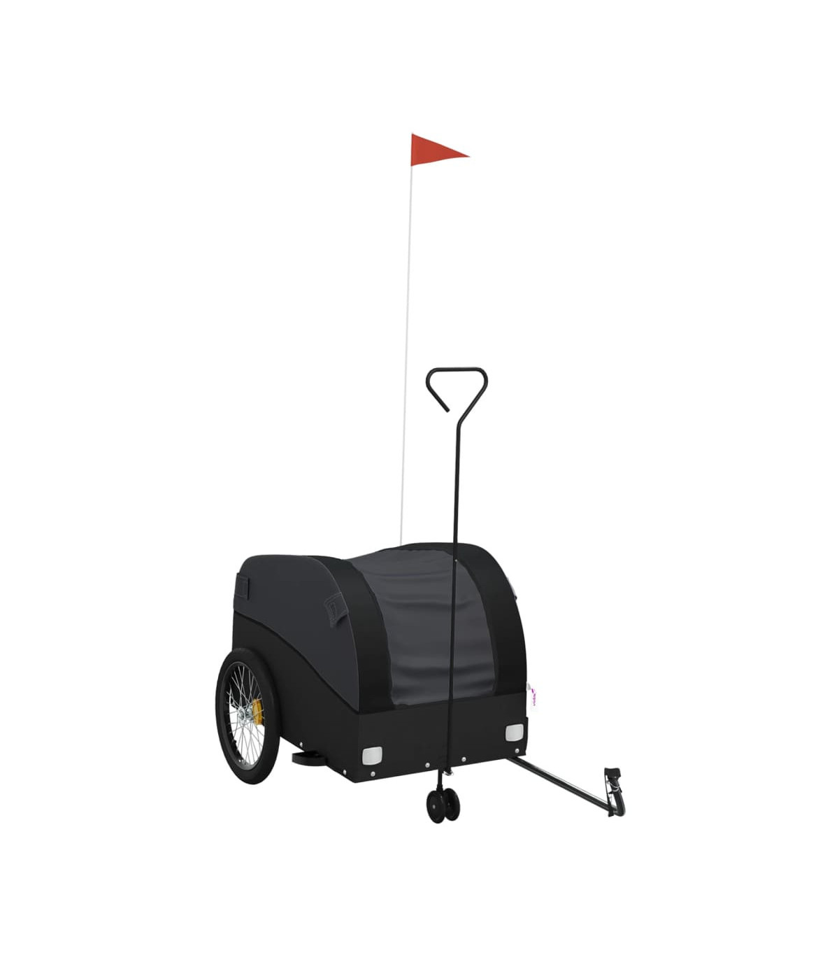 This versatile and sturdy bike trailer will be ideal for transporting heavy goods thanks to its maximum load capacity of 30 kg. Sturdy material: Iron is a strong and hard material. It's a solid favourite in industrial and furniture construction. Made of iron, this bicycle cargo trailer is very sturdy and durable.Practical design: This bike cart with a maximum load capacity of 30 kg, is perfect for hauling heavy goods like luggage, plants, tools or groceries.Considerate design: The bike trailer has a tow bar that makes it easy to connect it to a bicycle. At the same time, a safety flag is included for extra visibility.