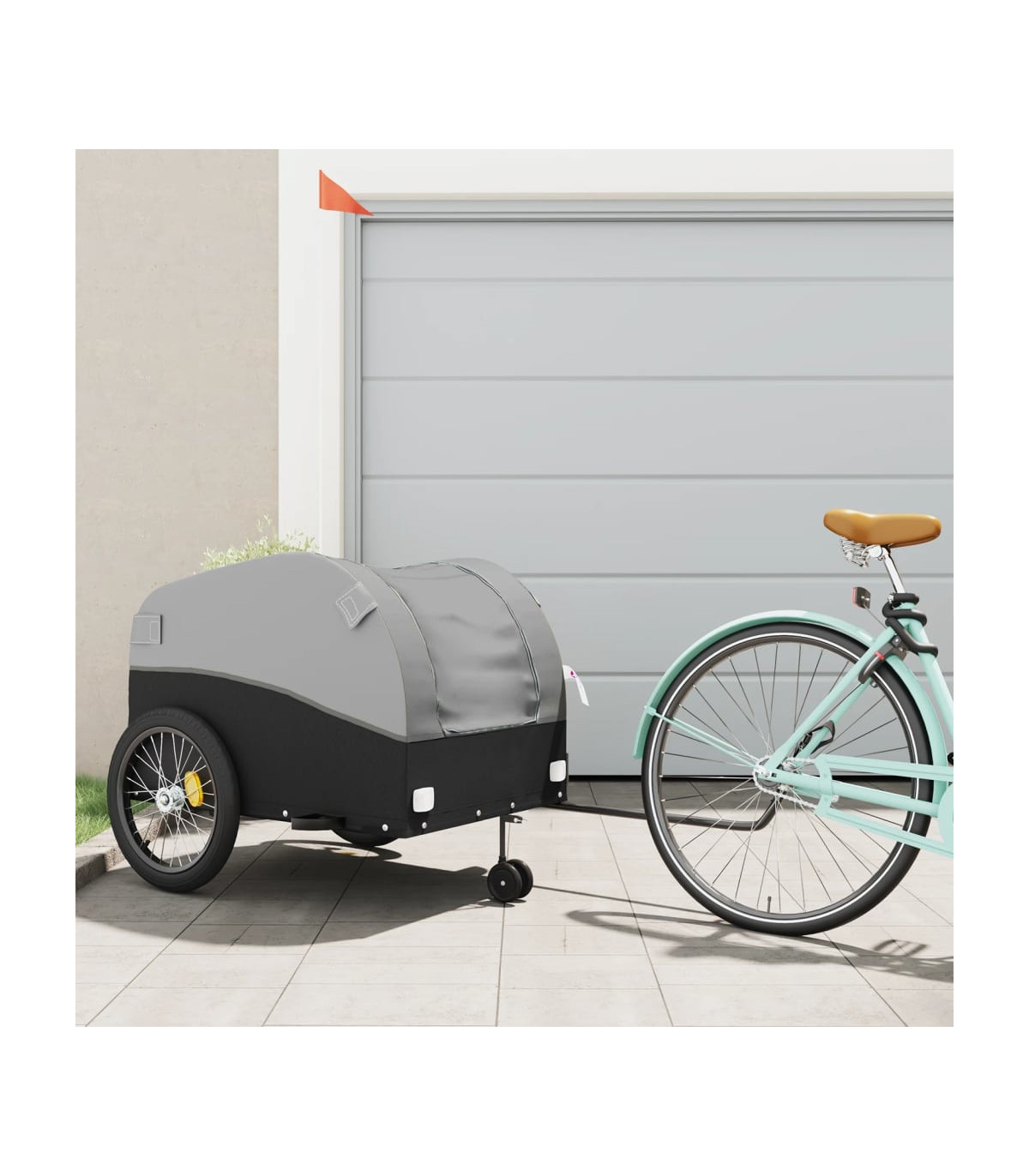 This versatile and sturdy bike trailer will be ideal for transporting heavy goods thanks to its maximum load capacity of 30 kg. Sturdy material: Iron is a strong and hard material. It's a solid favourite in industrial and furniture construction. Made of iron, this bicycle cargo trailer is very sturdy and durable.Practical design: This bike cart with a maximum load capacity of 30 kg, is perfect for hauling heavy goods like luggage, plants, tools or groceries.Considerate design: The bike trailer has a tow bar that makes it easy to connect it to a bicycle. At the same time, a safety flag is included for extra visibility.