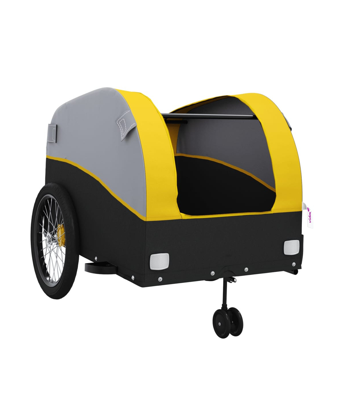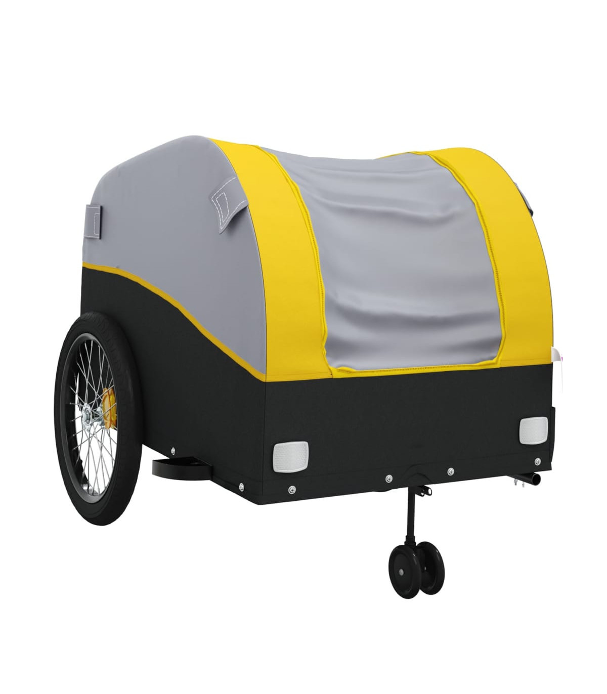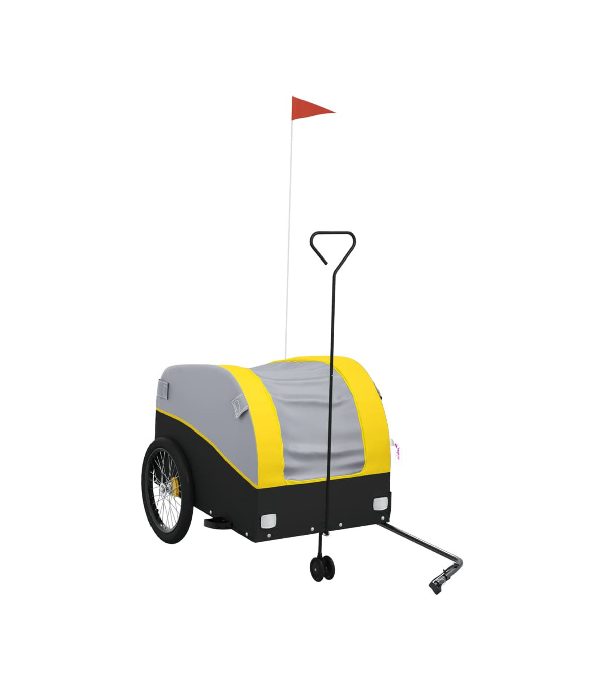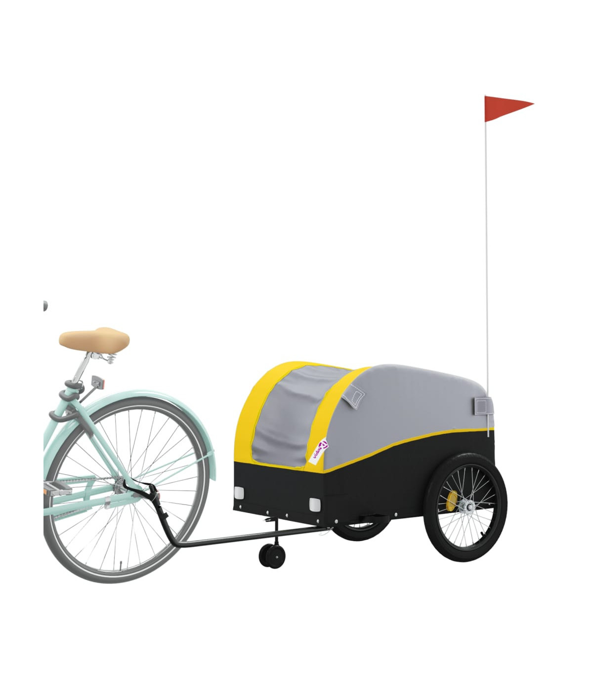 This versatile and sturdy bike trailer will be ideal for transporting heavy goods thanks to its maximum load capacity of 30 kg. Sturdy material: Iron is a strong and hard material. It's a solid favourite in industrial and furniture construction. Made of iron, this bicycle cargo trailer is very sturdy and durable.Practical design: This bike cart with a maximum load capacity of 30 kg, is perfect for hauling heavy goods like luggage, plants, tools or groceries.Considerate design: The bike trailer has a tow bar that makes it easy to connect it to a bicycle. At the same time, a safety flag is included for extra visibility.