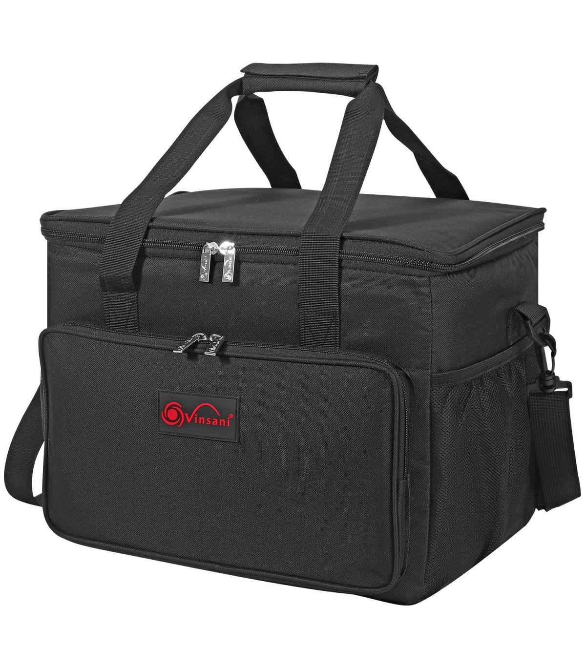 Stay prepared for picnics, camping trips, and outdoor adventures with this 24L Black Insulated Cooler Bag. The exterior is crafted from water-resistant 1680D Oxford fabric to keep your contents dry and clean. Inside, the bag features a food-grade PEVA foil lining and 8mm EPE foam insulation for excellent temperature control. The leak-proof lining ensures that your food and drinks stay fresh and secure during transport. With a wide opening, double zipper, side net pockets, and front bag, this cooler bag offers ample storage space for all your essentials. The padded handle and detachable shoulder strap provide multiple carrying options, while the foldable design allows for easy storage when not in use.