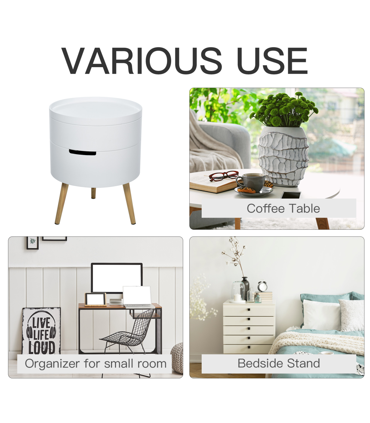 Style and storage stacked into one - bring this side table, from HOMCOM, into the living room and bedroom for something which looks fantastic and keeps your home tidy. The table top and middle storage component are removable, so you can chose the combination as you like. The top can be used alone as a raised-edge tray - great for tea times. Simple style in versatile white, works well with a range of interiors.