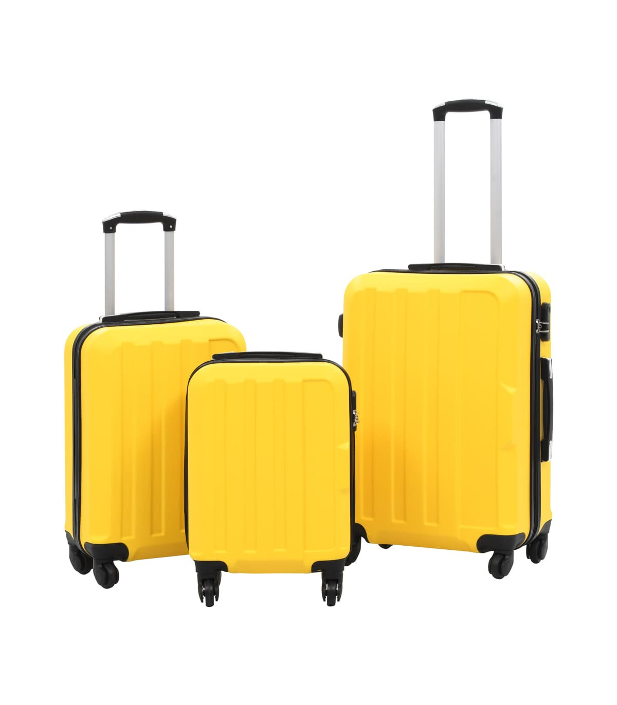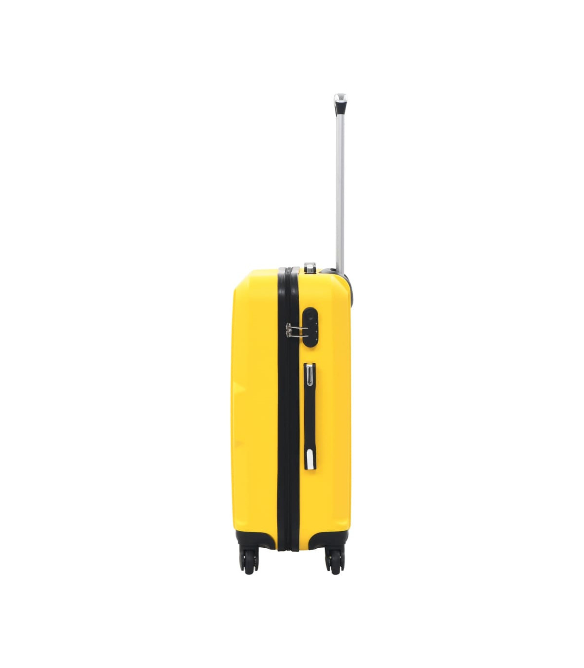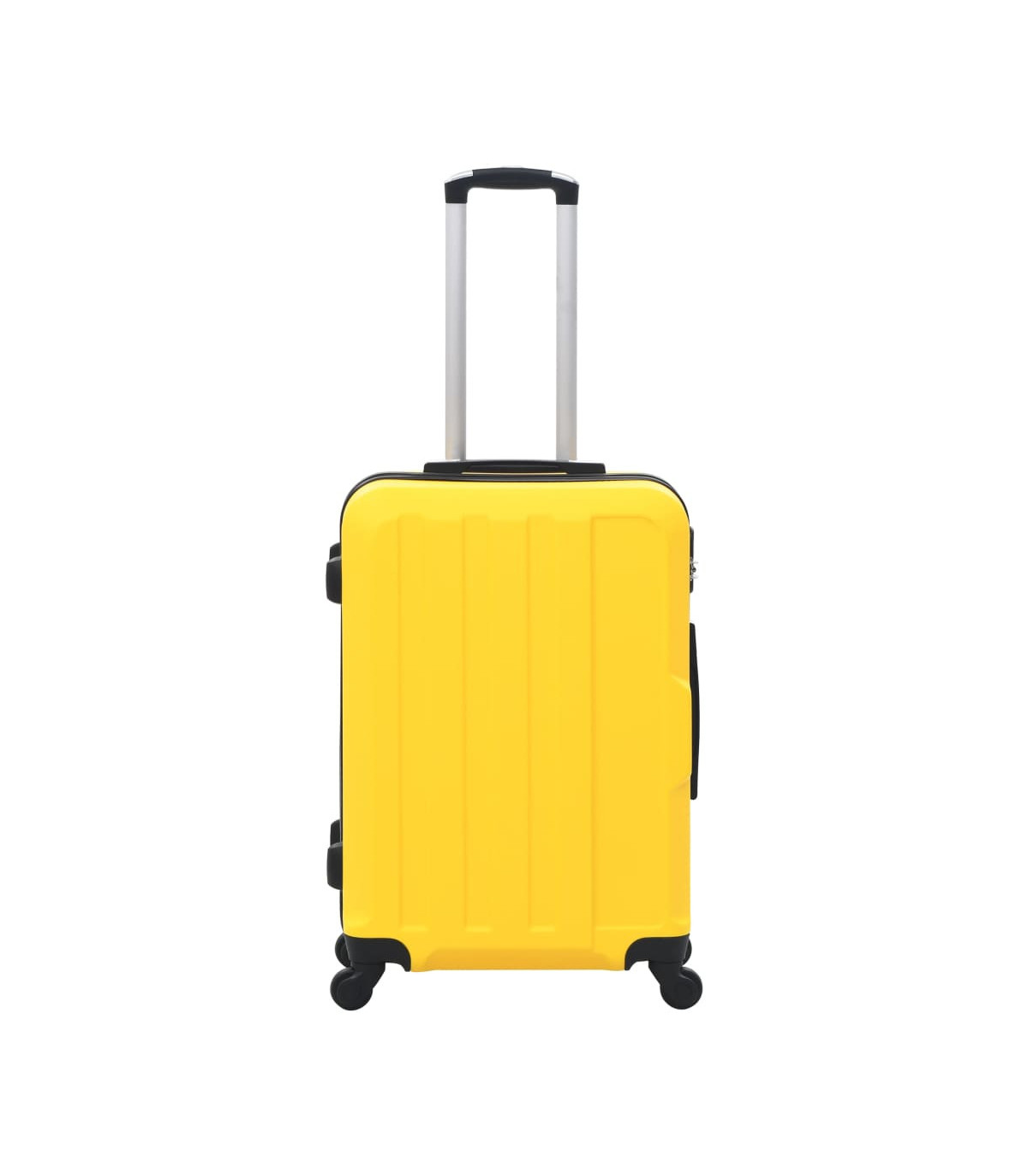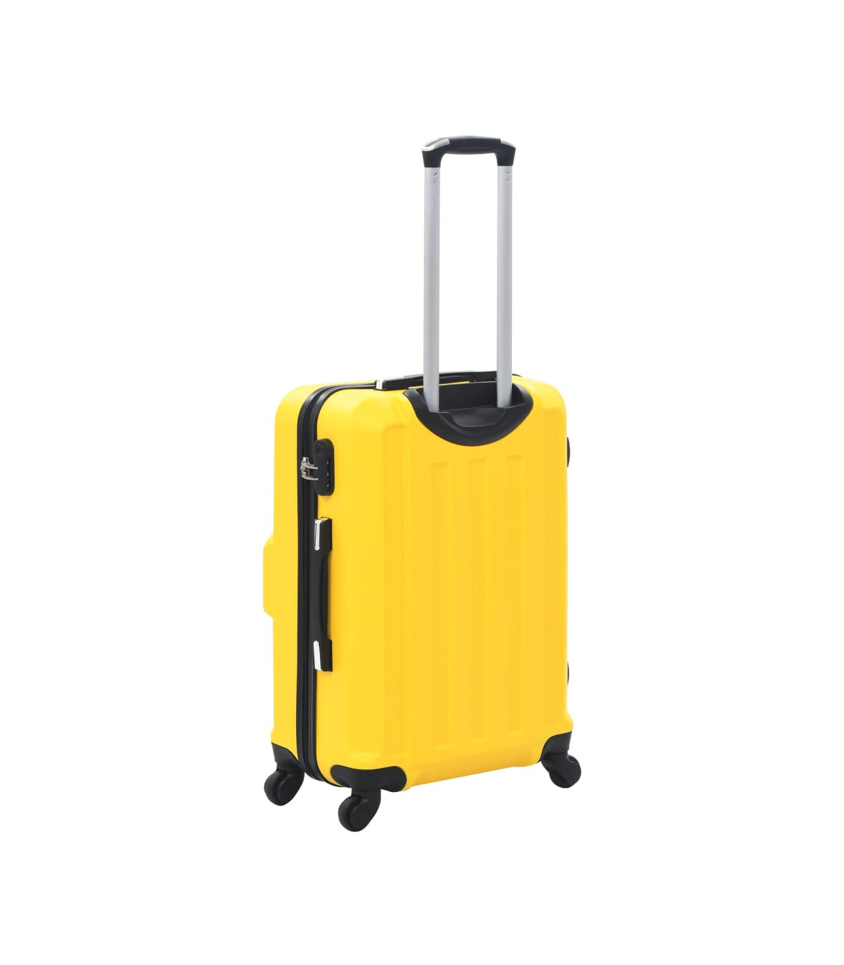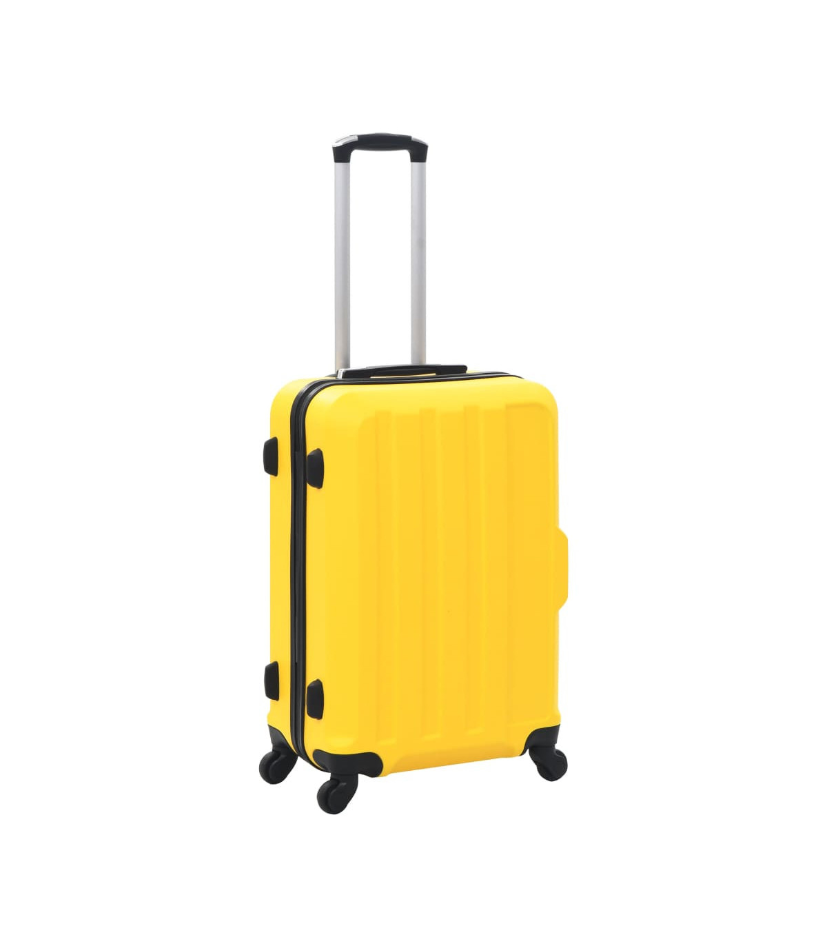 Whether you are going on a business trip or holiday, this yellow ABS hardcase trolley set is the perfect solution for all your packing needs. The set features strong and durable ABS hard shells with security locks to ensure your belongings are safe and secure. The internal tensioning straps help keep your items organized and in place during travel. Each trolley is equipped with a convenient carrying handle on the top and four 360 degree castors for smooth mobility. This trolley set is not only highly durable but also lightweight, making it an ideal travel companion. Additionally, the set includes 3 trolleys in different sizes, with the smaller ones able to be stored inside the larger ones to save space.