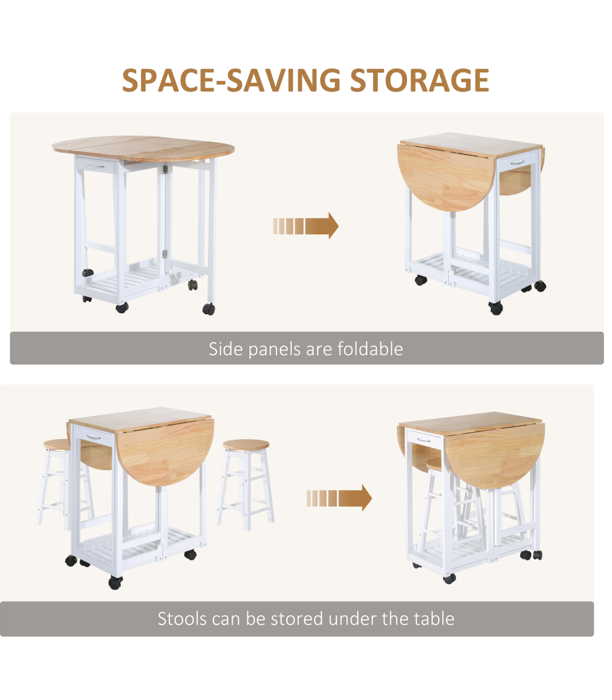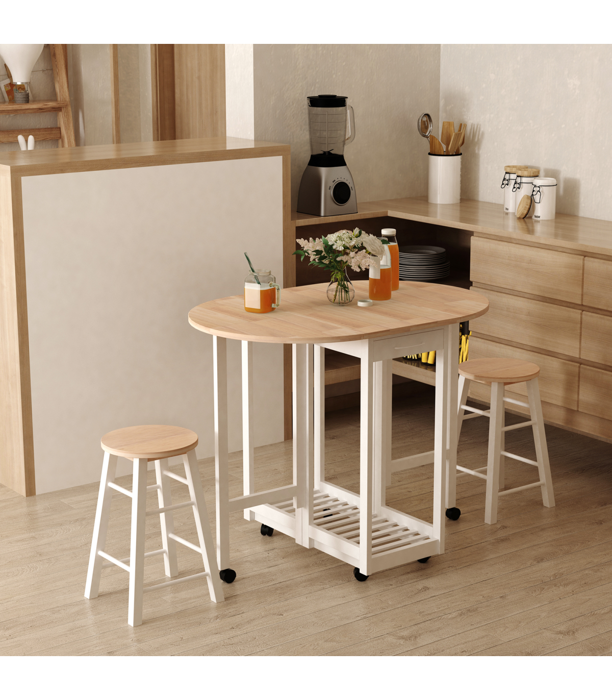 - Space-saving design with drop-leaf tabletop and tuck-under stools
