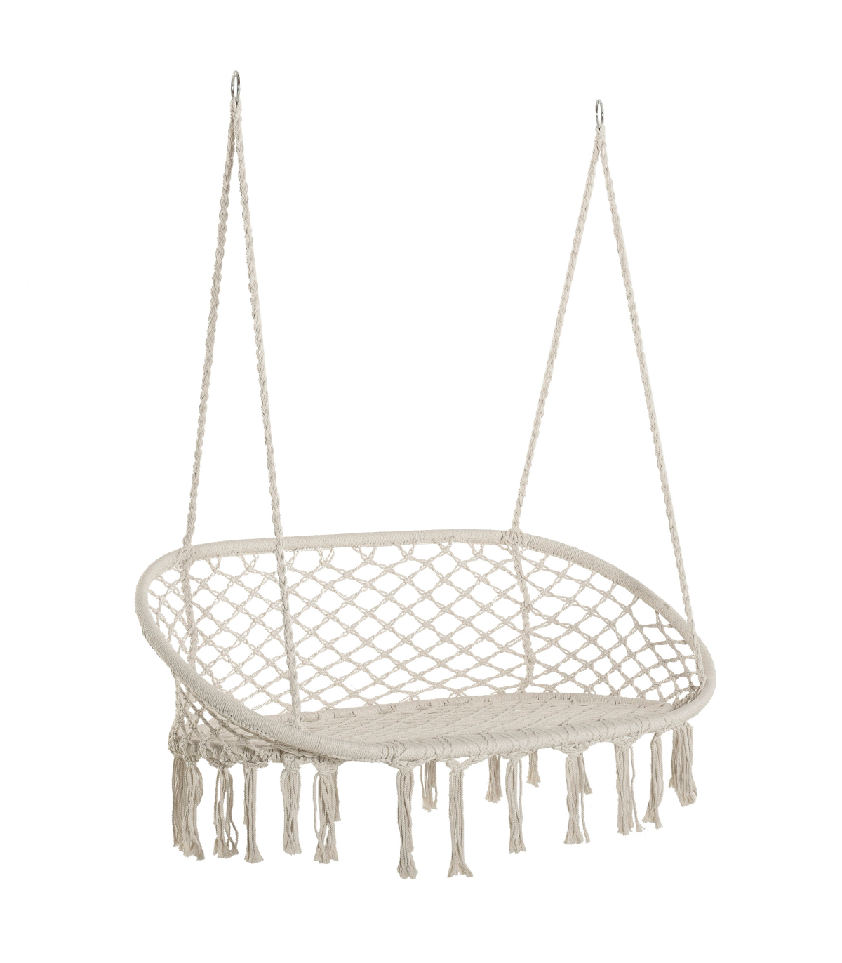 - Hanging hammock chair is elegant with fringe tassels