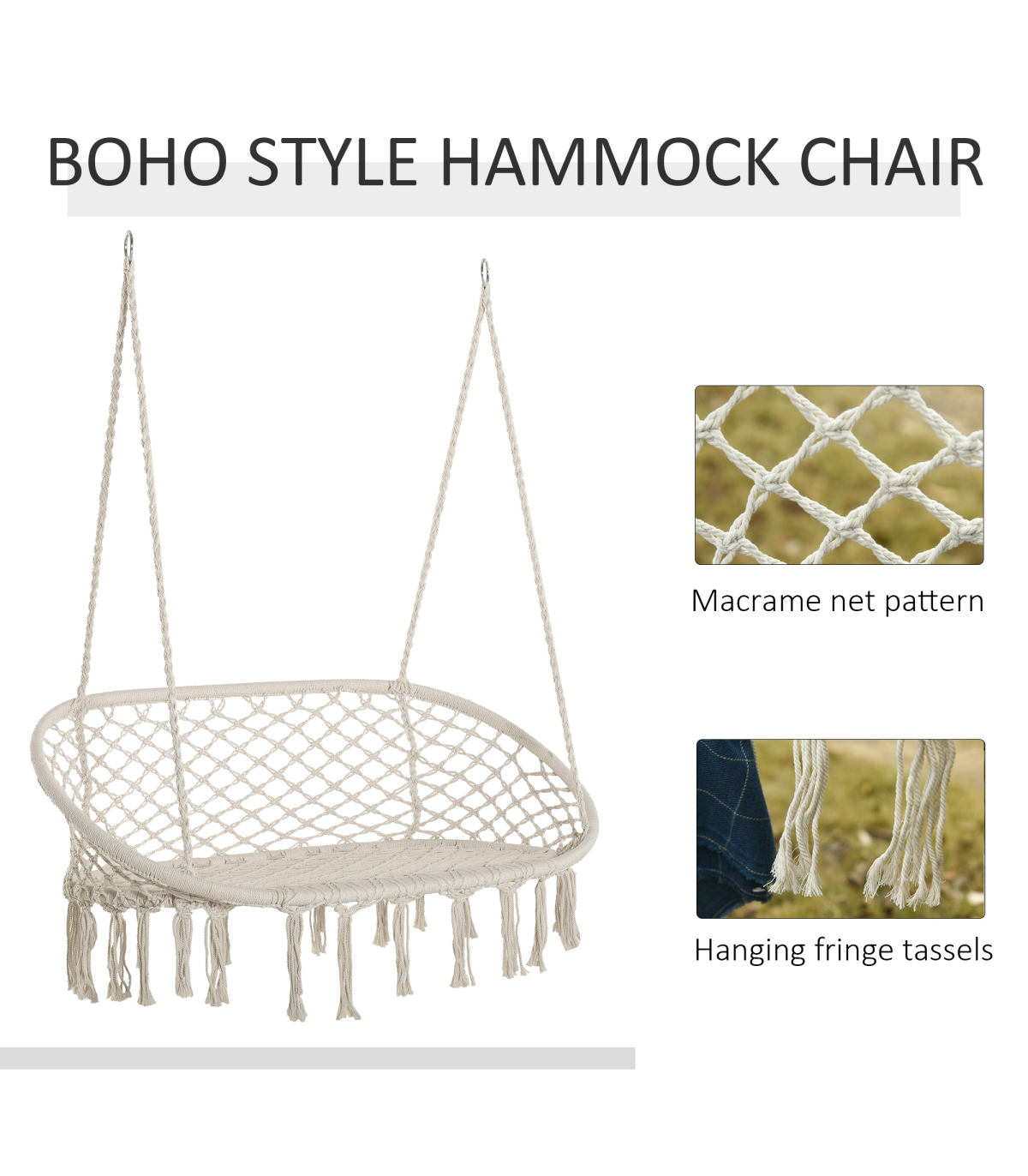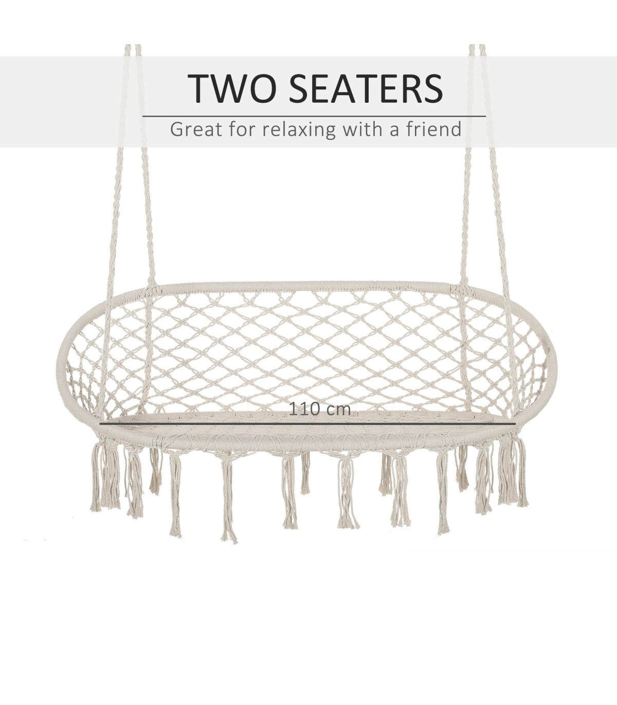 A seat to relax the day away in with company - wherever you choose to - this double-seat garden hammock chair from Outsunny. The boho style is pretty and elegant, showcasing fringe tassels wrapped in rope. The metal frame of the hanging seat is strong for support, and the curved back and armrests keep you supported. And the garden swing hammock comes with a spacious seat to keep you comfortable.