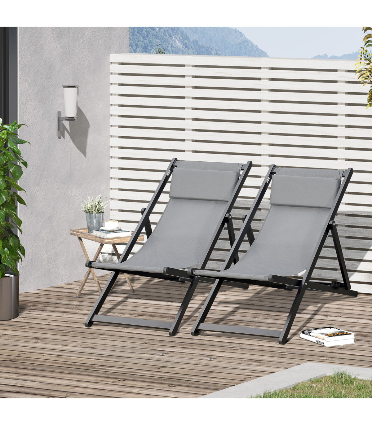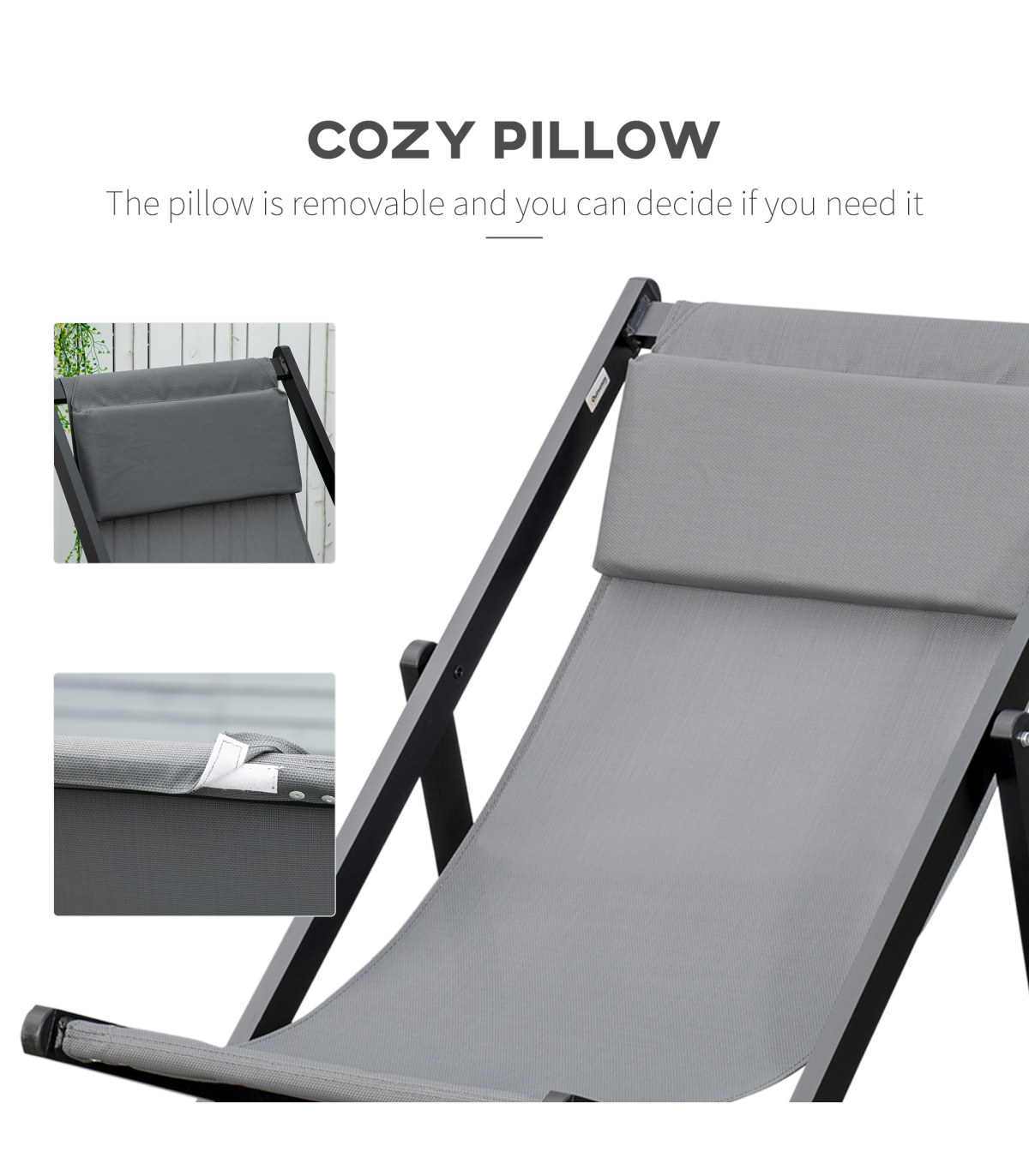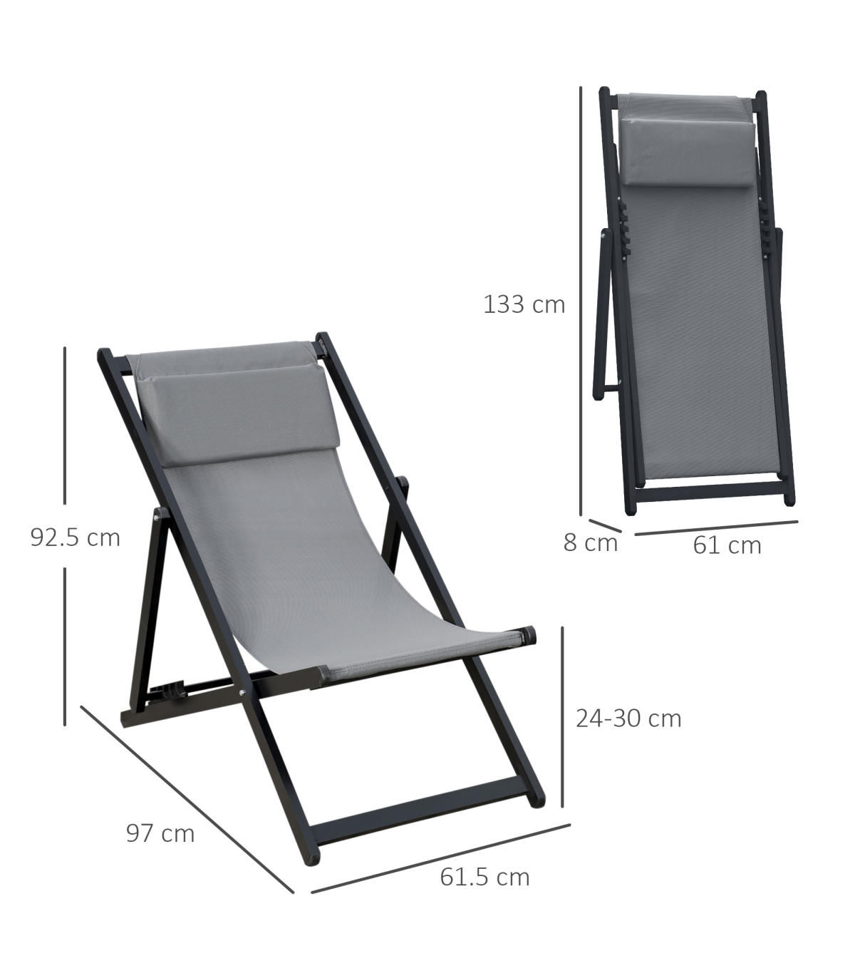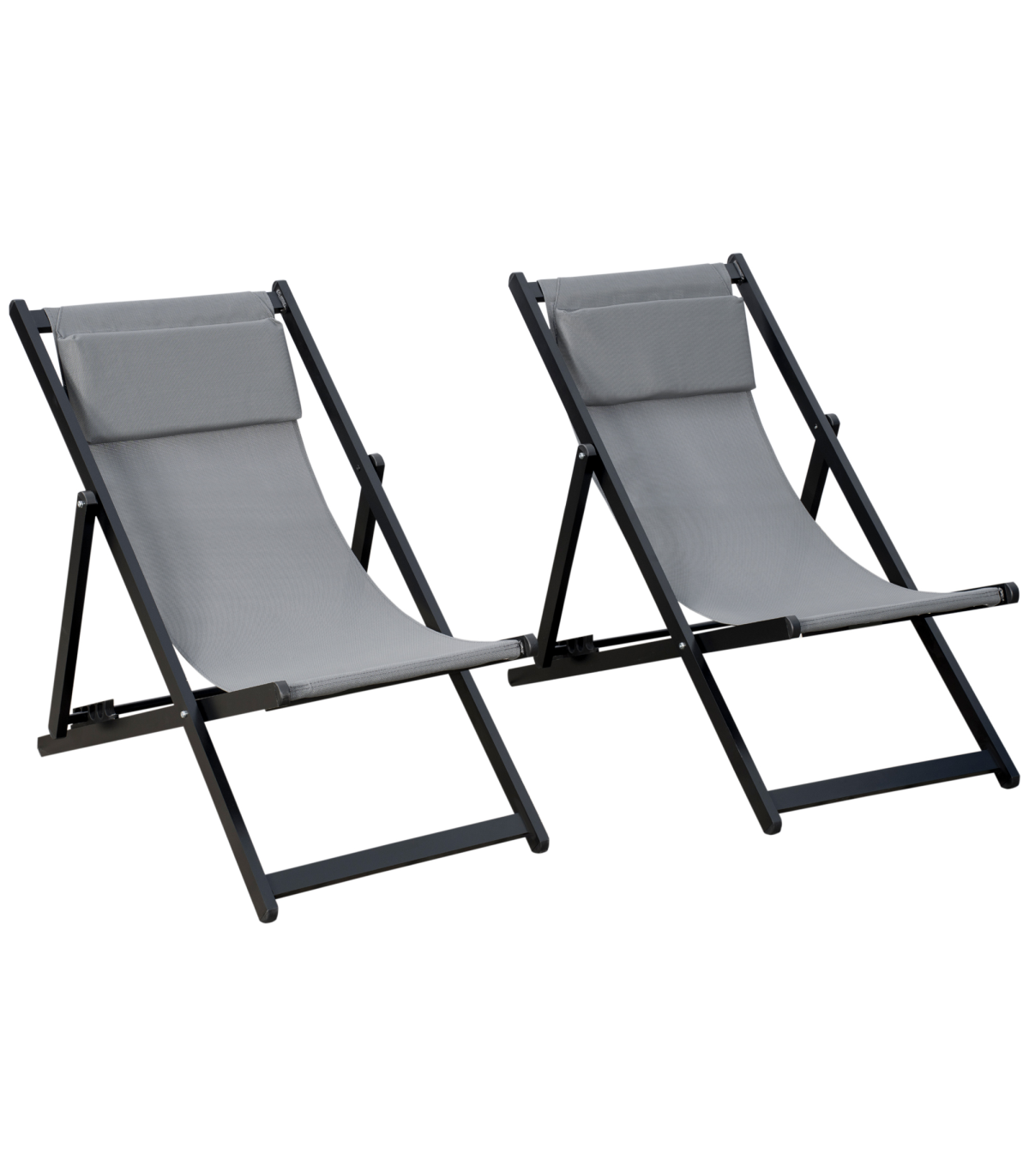 Be ready for the warmer weather, with these two Outsunny reclining garden chairs. Aluminium frames are strong and supportive - they are foldable too, so you can carry and store them around easily. The back can be set to five different positions - lean back to an angle which suits. Fabric seats to hold your body, complete with a pillow for head/neck comfort and support.
