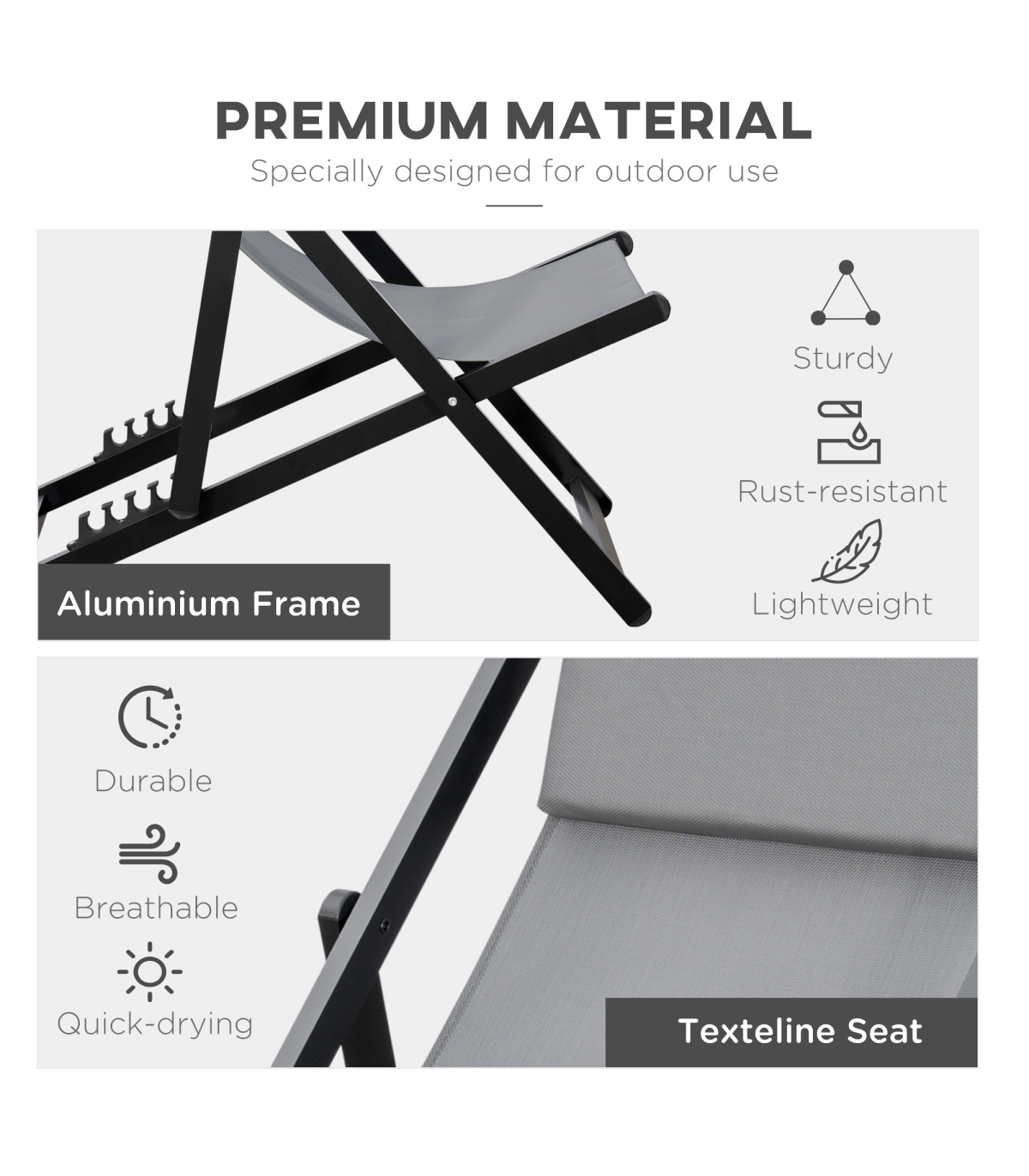 - Folding aluminium frame: Strong and supportive core - each outdoor recliner chair will provide for plenty of use. Easy to carry and store.