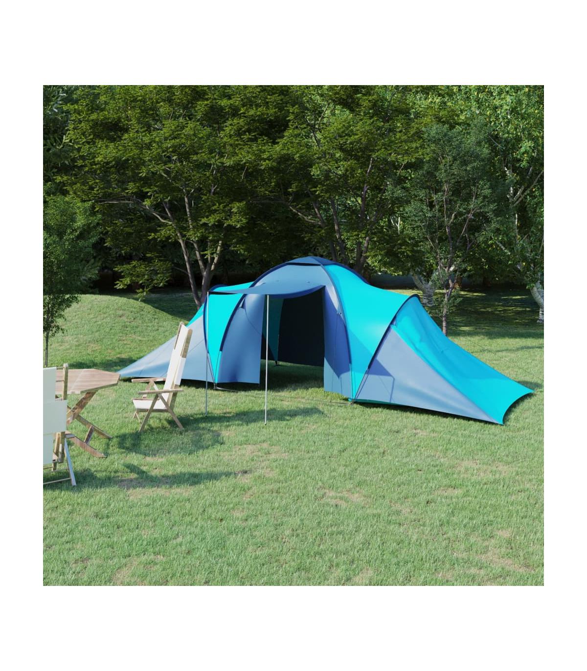 This large camping tent in blue and light blue is the perfect choice for all your outdoor adventures. Here are some key features:
