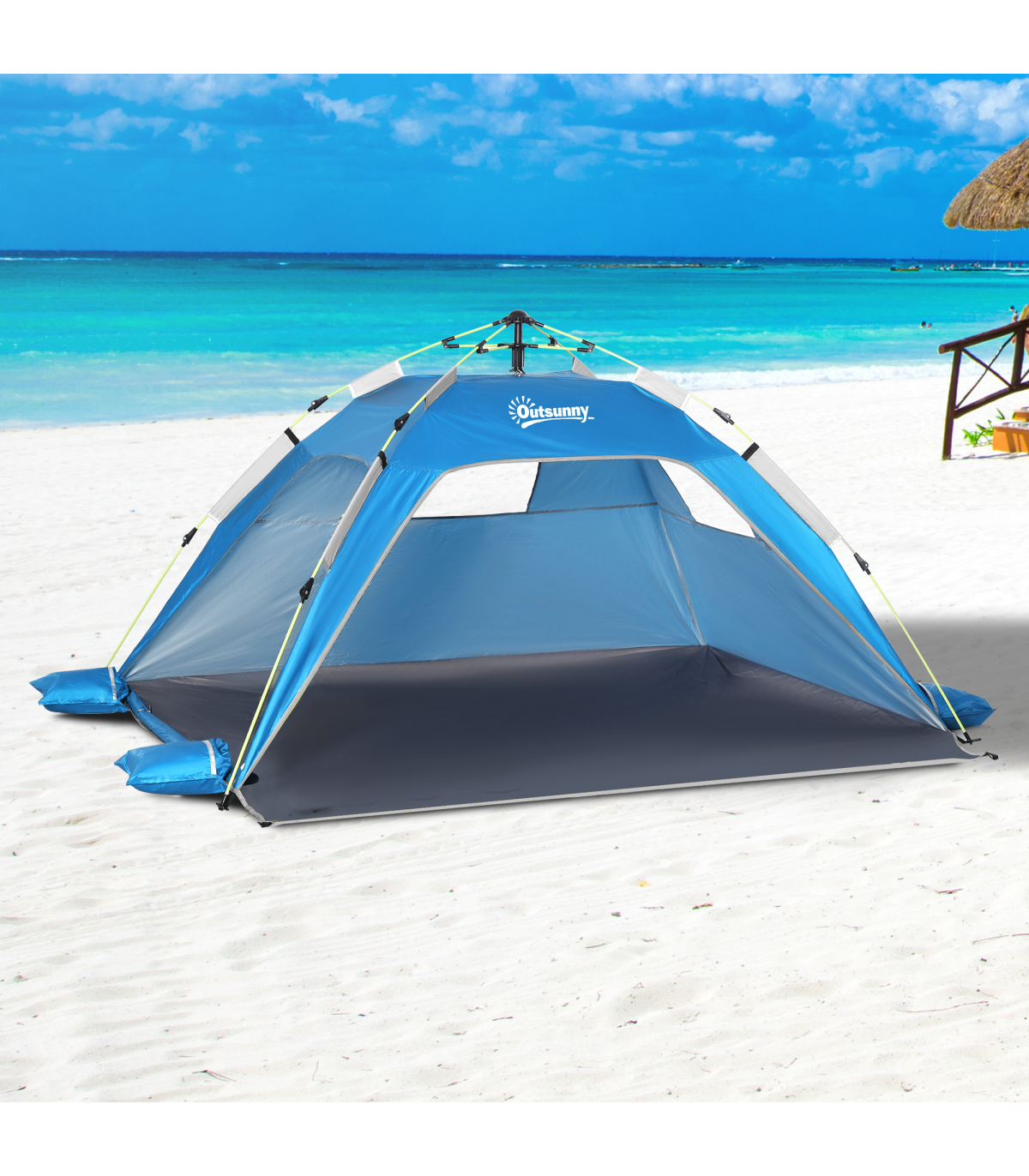 - POP-UP DESIGN: Easy to set up and take down, giving you a beach shelter within minutes. Fibreglass structure to stand upright all day long.
