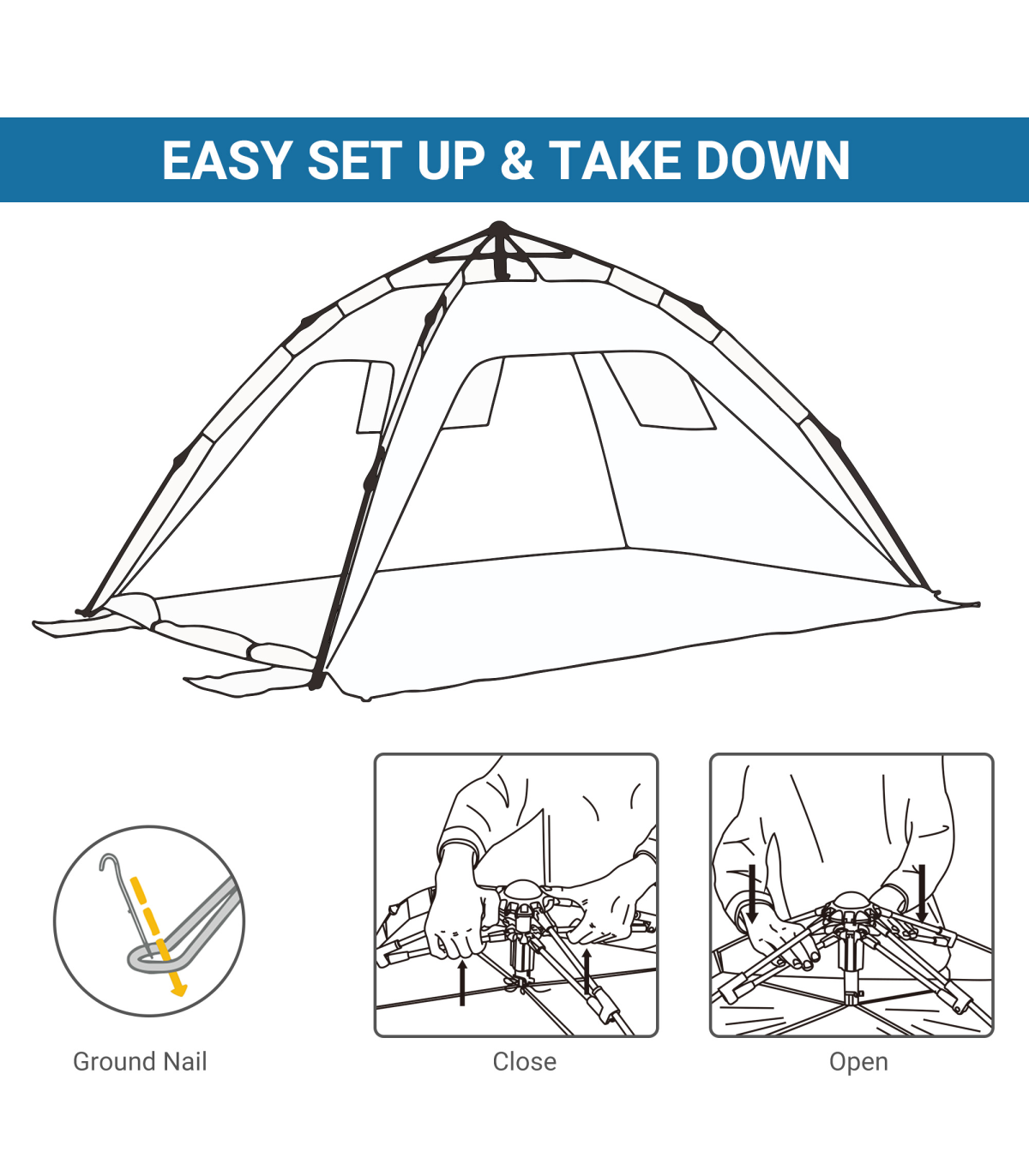 - FOUR DRAWSTRING BAGS: Fill with sand to add extra weight to the pop-up shelter. Can also be used as extra storage. Ground stakes also included.