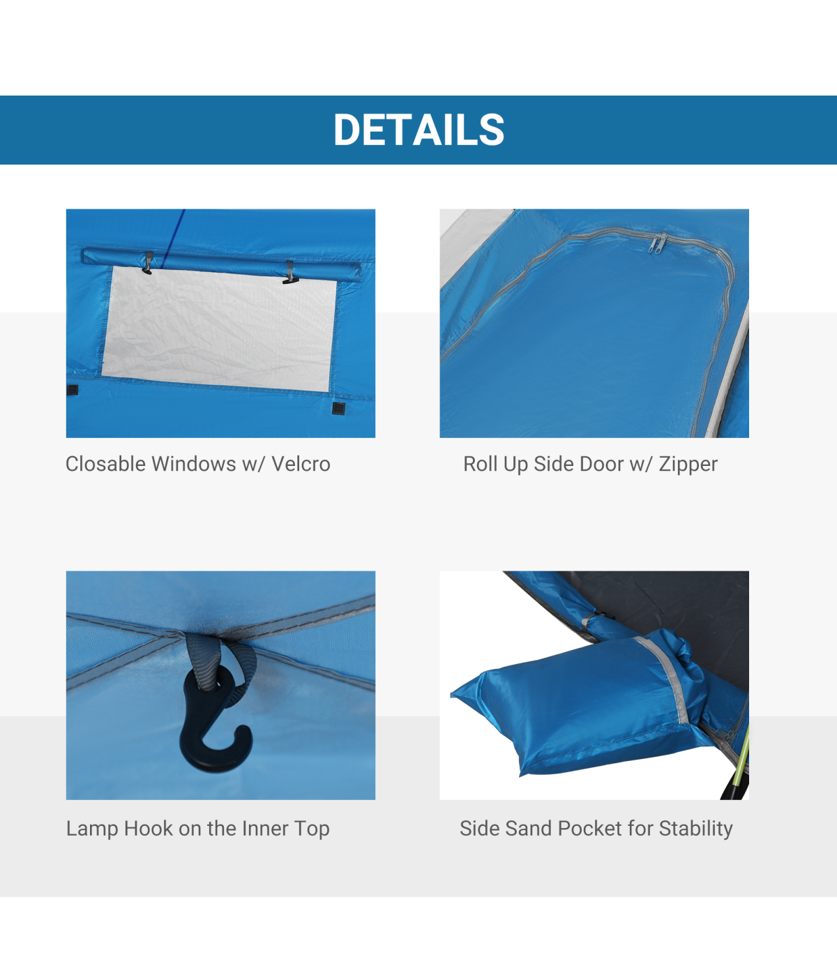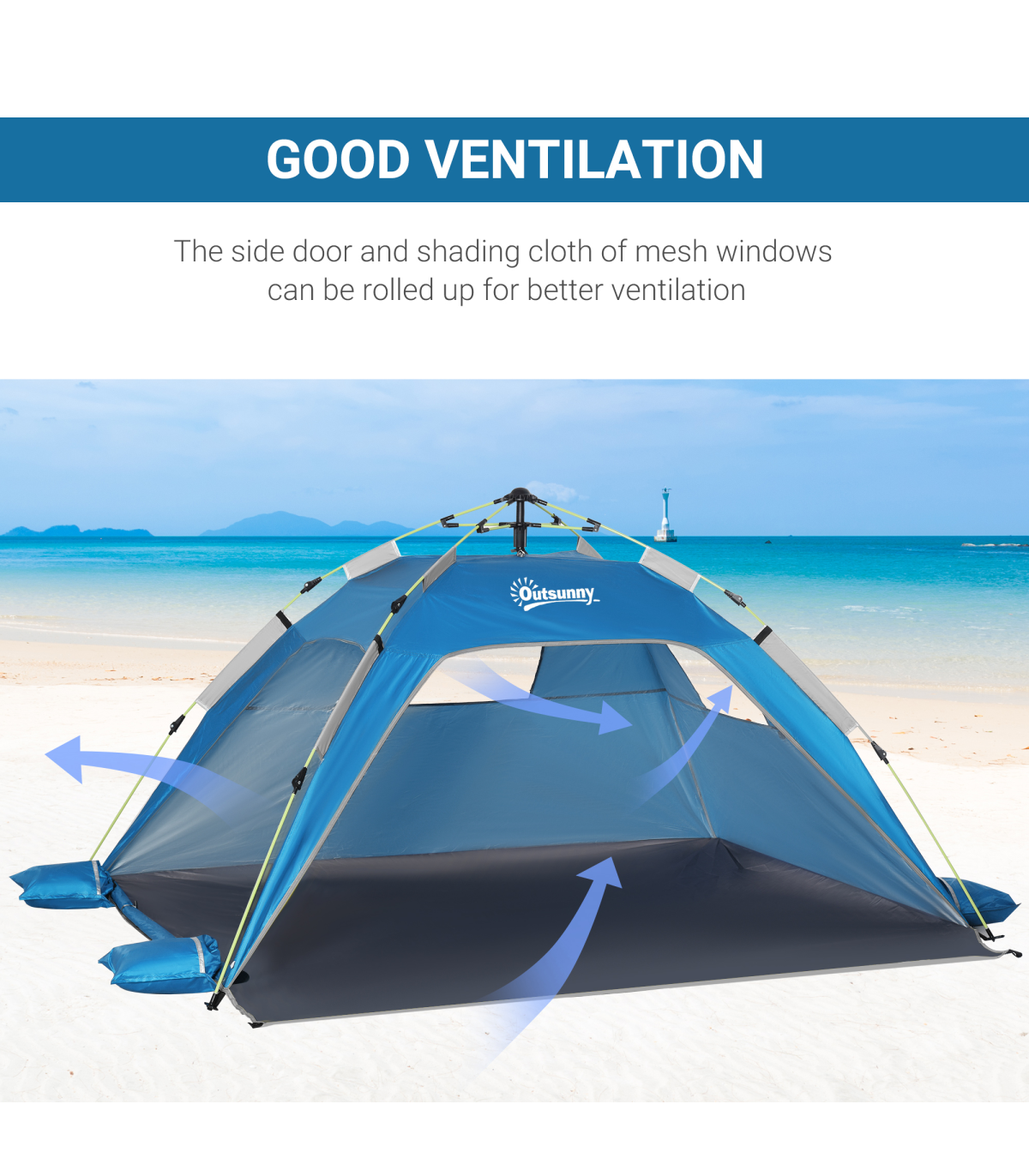 - WINDOWS AND DOOR: Allows fresh air inside the UV tent to keep you cool. Side doors and windows can be zipped up to create privacy.