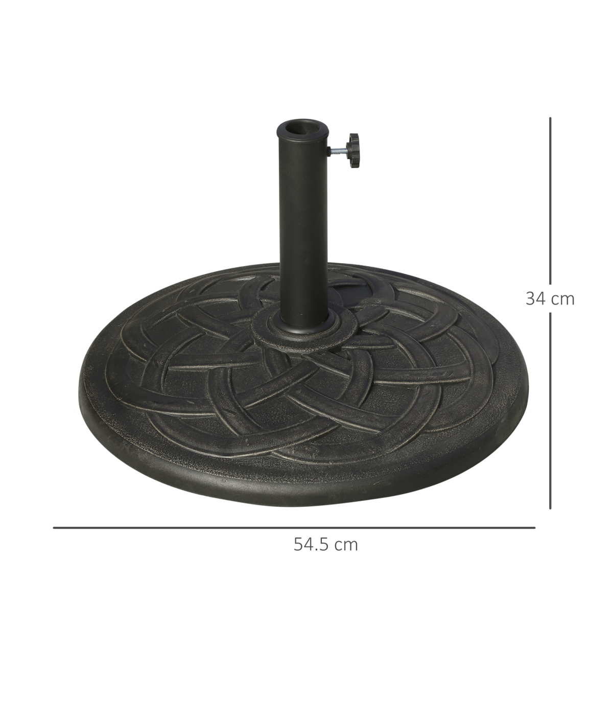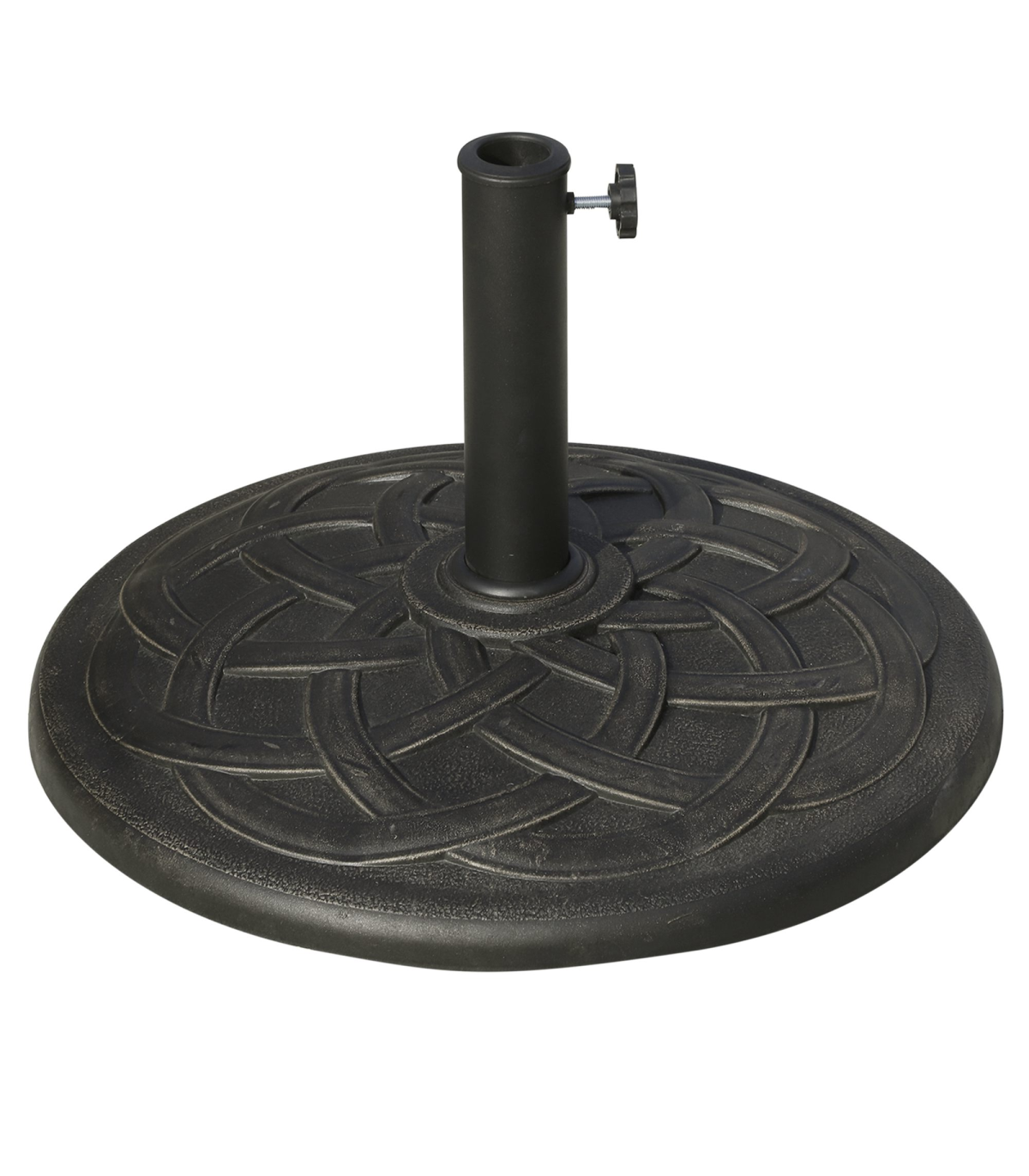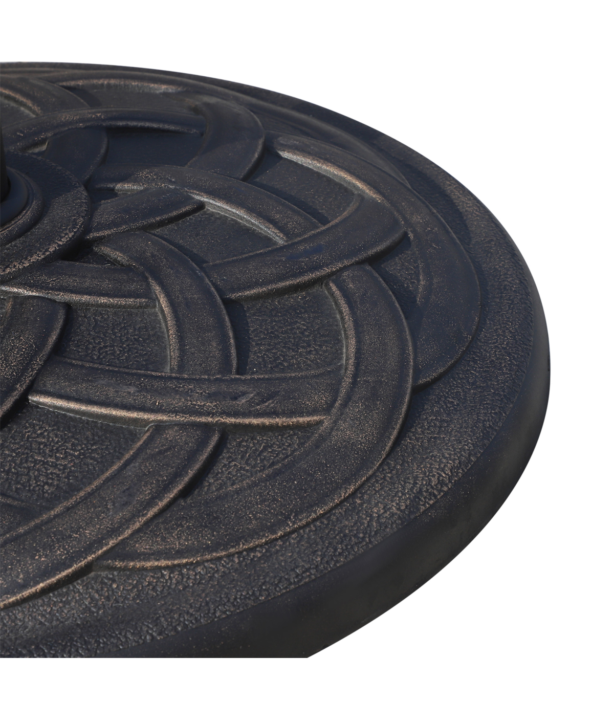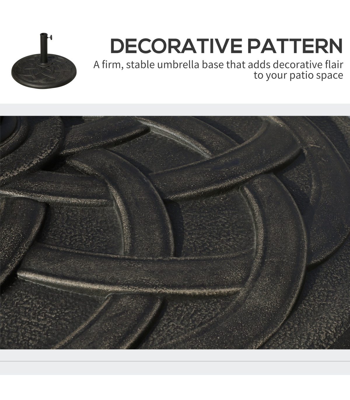 This Outsunny brand circular umbrella base stand, offers a decorative, high-end touch to your outdoor living area while holding your umbrella in place. With a suttle finish, the base is designed to add charm and elegance to most backyard patio space. Made from resin, steel and plastic, this base is rust-resistant and made to last for years.