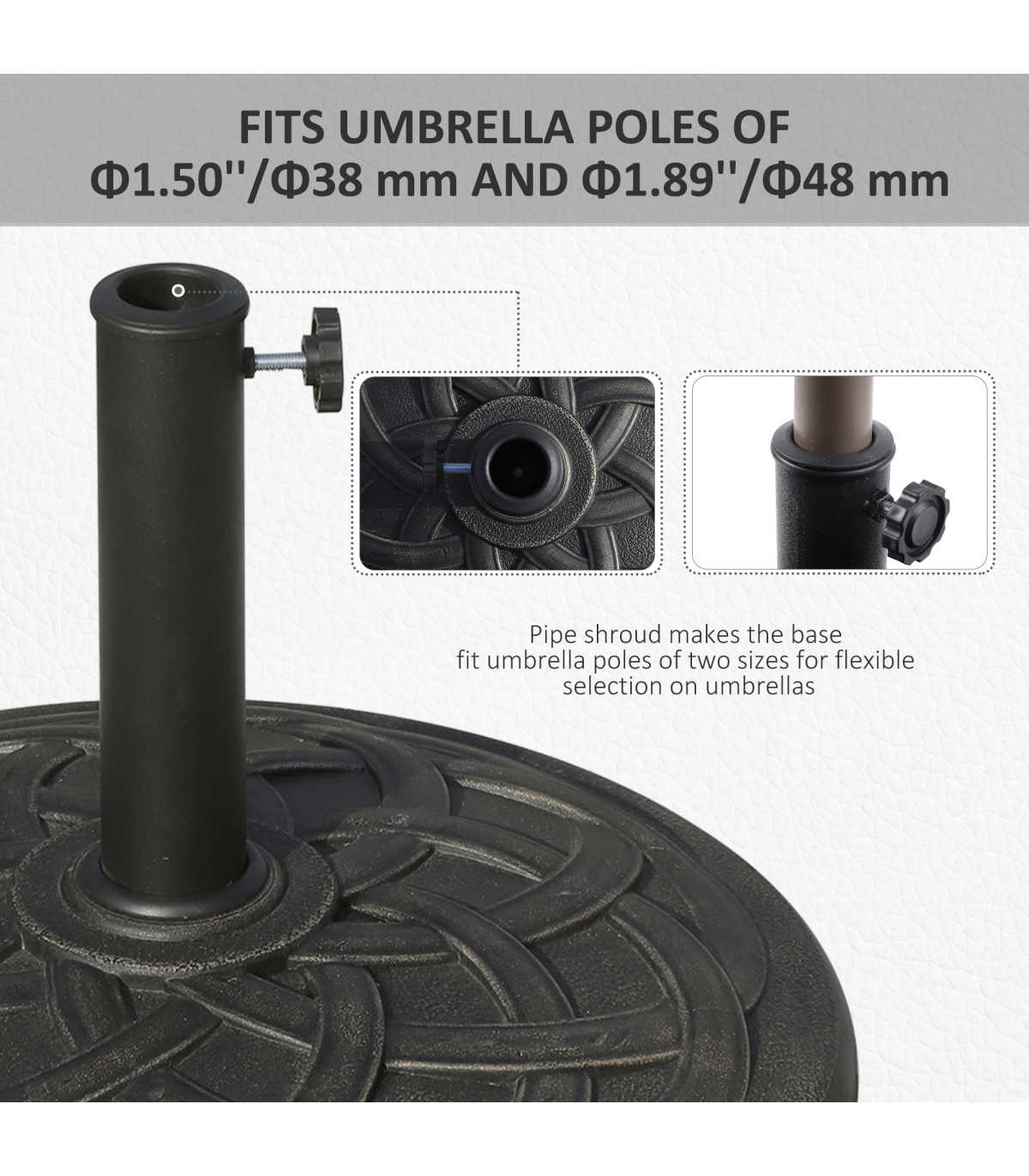 - Fits ?38 mm and ?48 mm umbrella poles