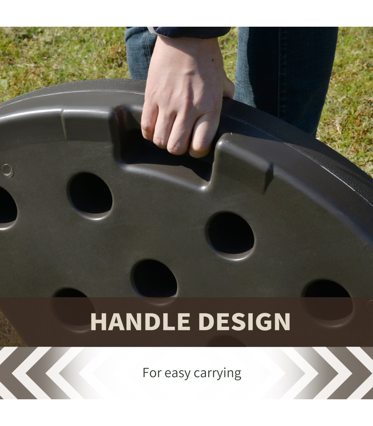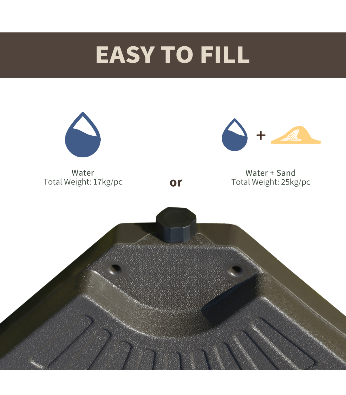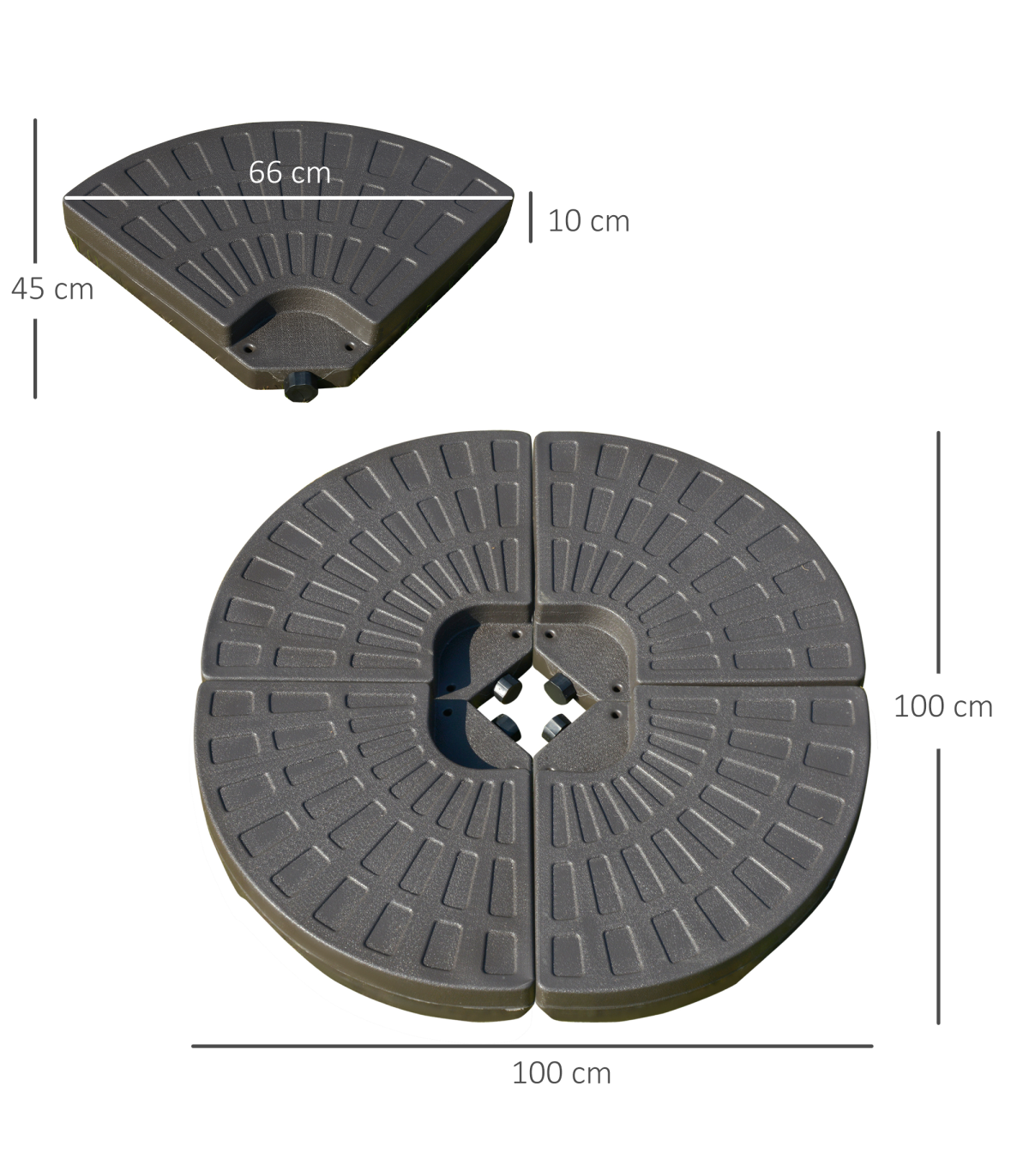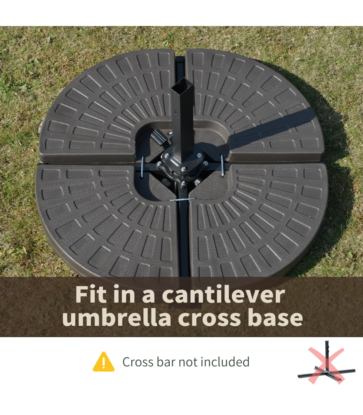 Ensure your parasol is always held firmly in place with parasol weights from Outsunny. Made from strong HDPE plastic, the cantilever parasol base is comprised of four pieces which fit together easily and hold up to 17kg of water weight and 25kg of a water and sand mix. When empty, these weights for parasol are light enough to carry around allowing you to pick your perfect sunshade spot with ease. Whether you wish to use this for the home, coffee shop, or pub, our parasol base weights are suitable for you.