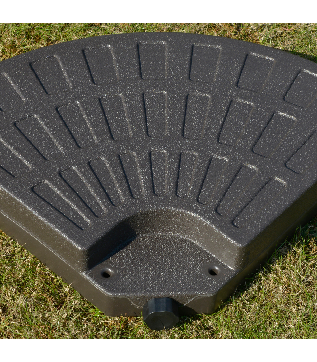 - EASY FILL: Takes up to 17kg water or 25kg water and sand. Our umbrella weights can hold your parasol in place.