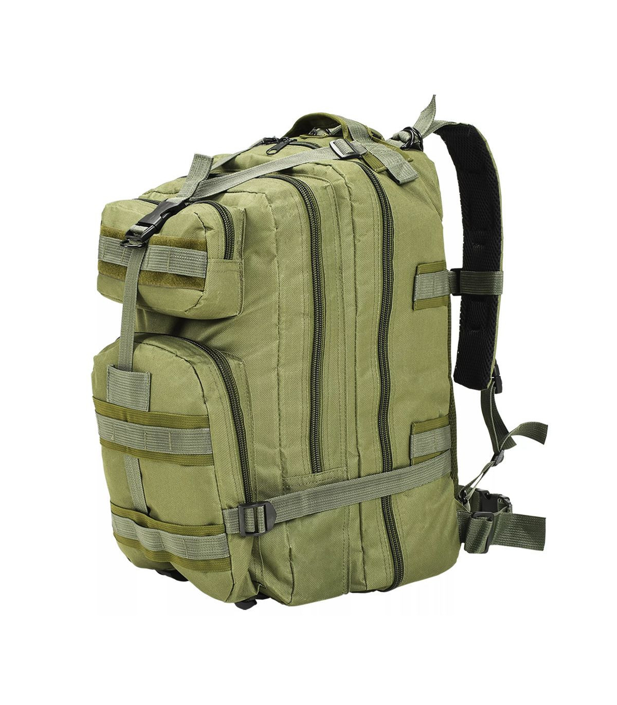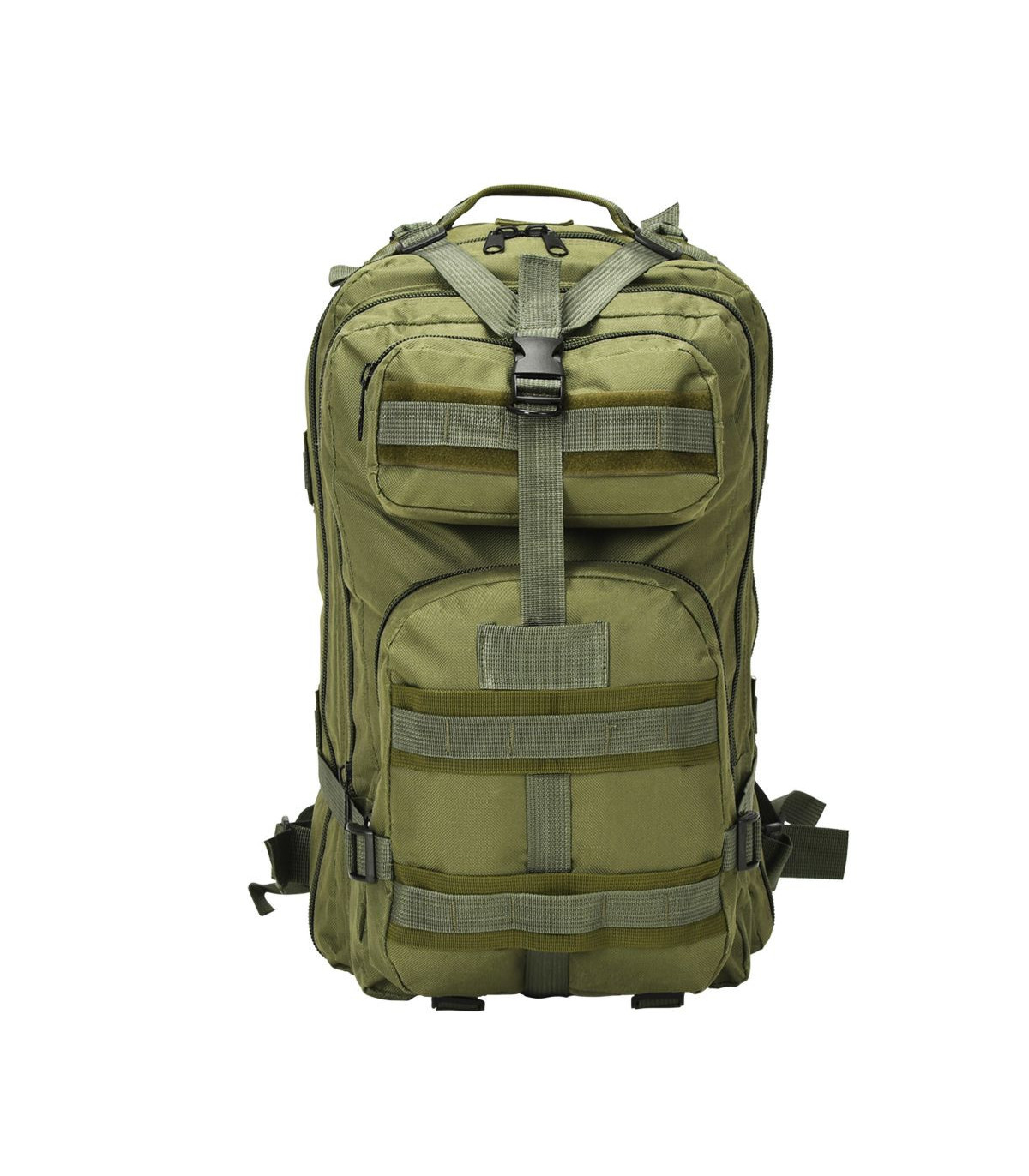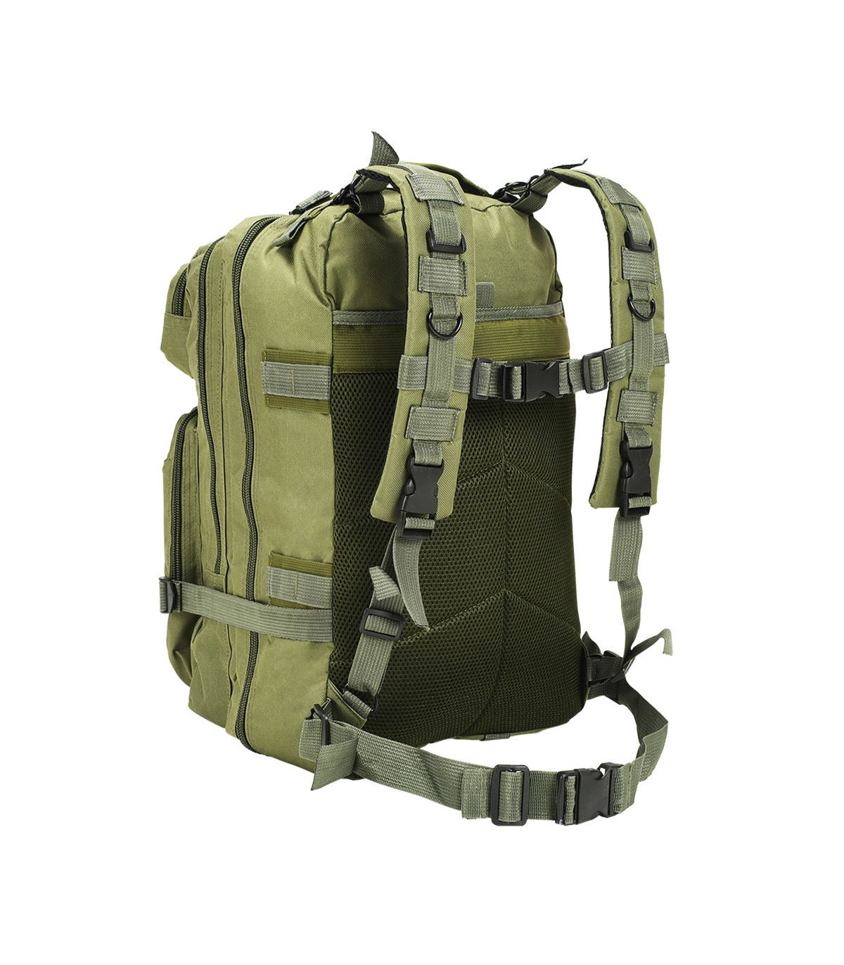 Our comfortable and practical army-style backpack is the ideal companion for military personnel, but also for scouts, hunters, hikers and outdoor enthusiasts. Our comfortable and practical army-style backpack is the ideal companion for travellers, but also for scouts, hunters, hikers and outdoor enthusiasts. Made of high-quality coated fabric, this backpack is tear resistant, weather resistant and hardwearing. The army-style backpack features two padded, adjustable shoulder straps, compression straps and an adjustable and removable chest belt and waist belt. The backpack has a large capacity of 50 litres so you can pack everything you need on your outdoor adventures. The large main compartment and the secondary compartment can be used to store your big items and two zipped front pockets provide extra space for safely and conveniently storing the items you need close at hand, such as knives, glasses, lamps, etc. The backpack has a breathable mesh backing for added comfort.