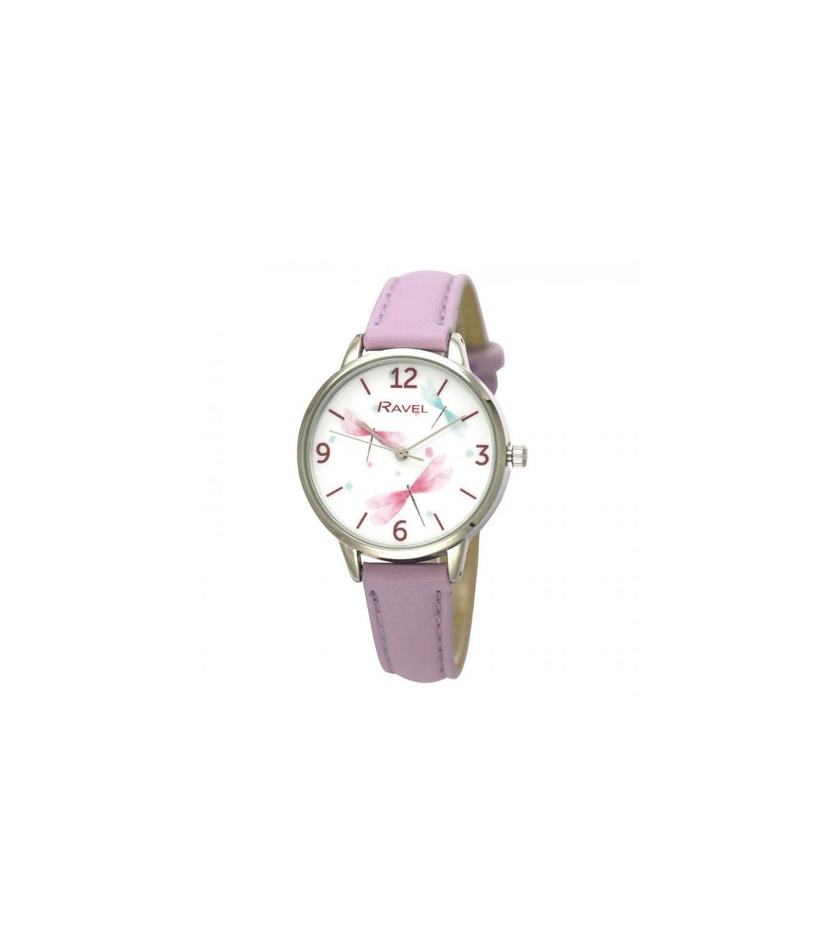 Dragonfly Inspired watch is a charming addition to any wardrobe. A polished round case features a white face with minimal index detailing, hands and hour markers. Strap available in white, blue & lilac.