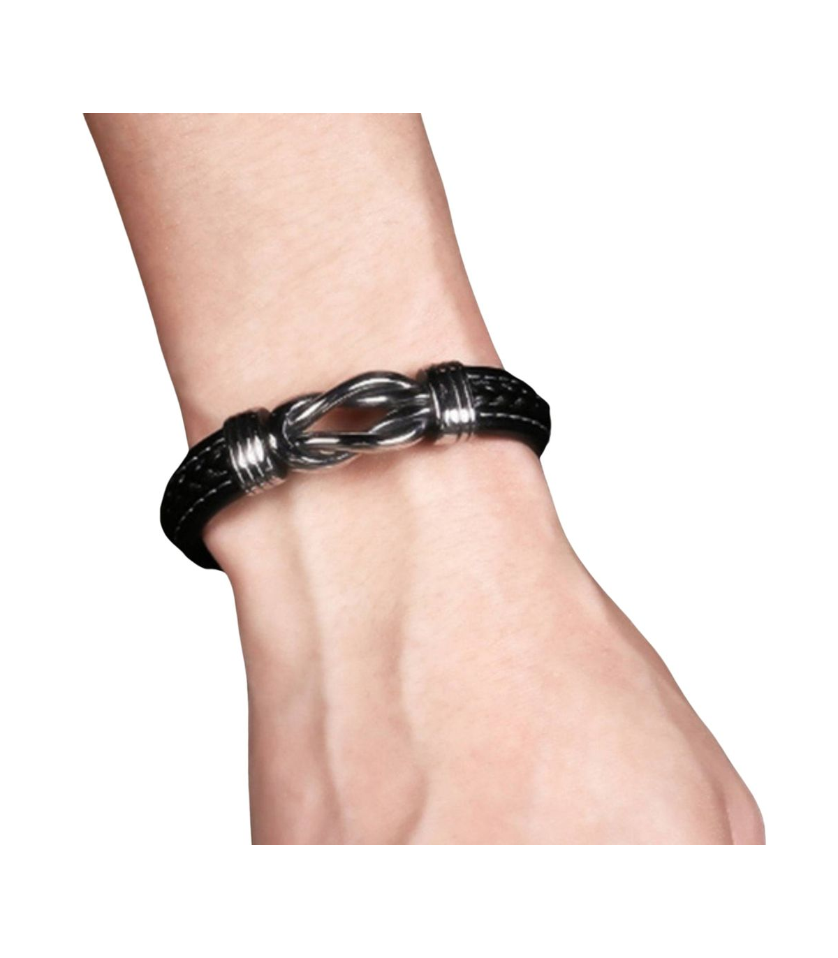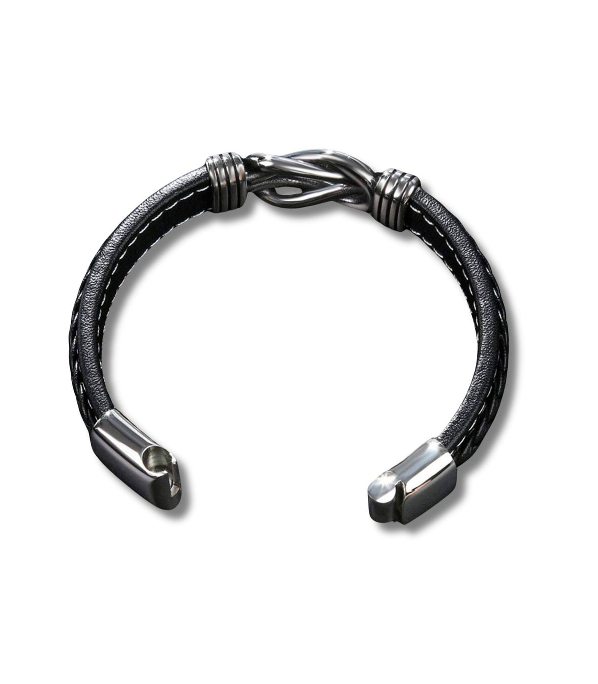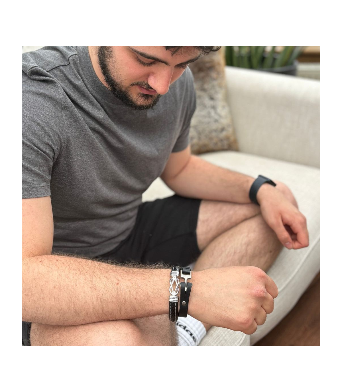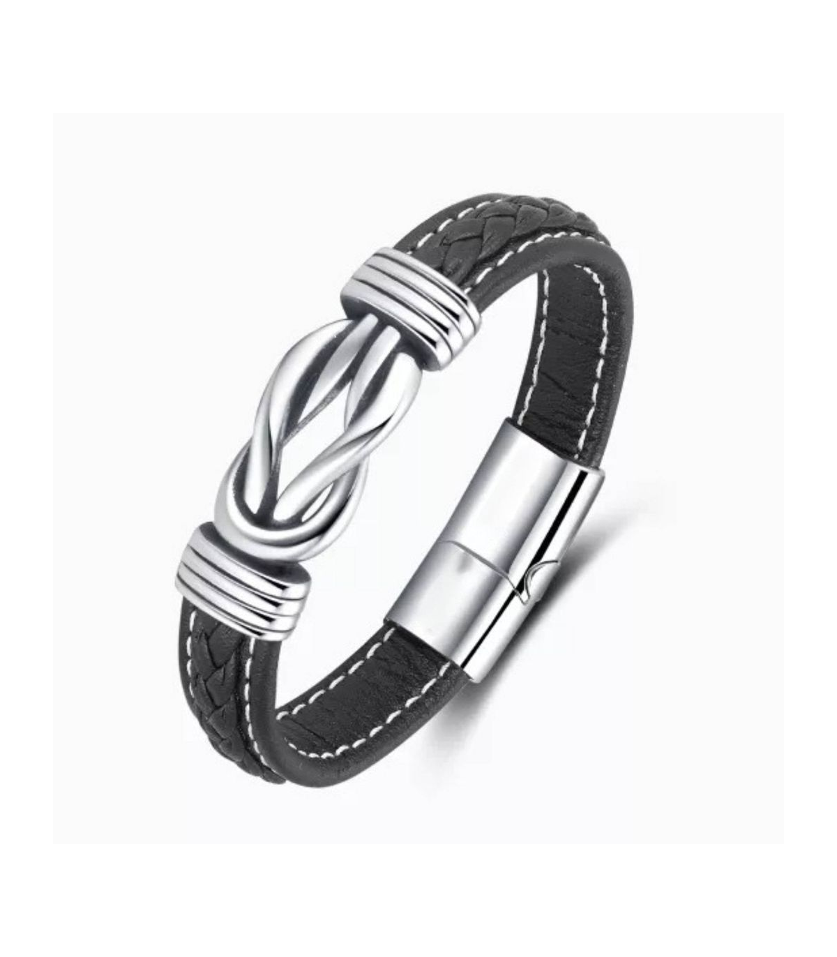 Tell them you love them with our beautiful black leather bracelet with a strong silver coloured stainless steel infinity knot detail and fastening. This modern design is suitable for the men in your life, perfect for Father's day, Birthday, Christmas or Valentine's day. Great for a thank you gift for a male teacher, brother, boyfriend, uncle or Dad or groovy Grandad.