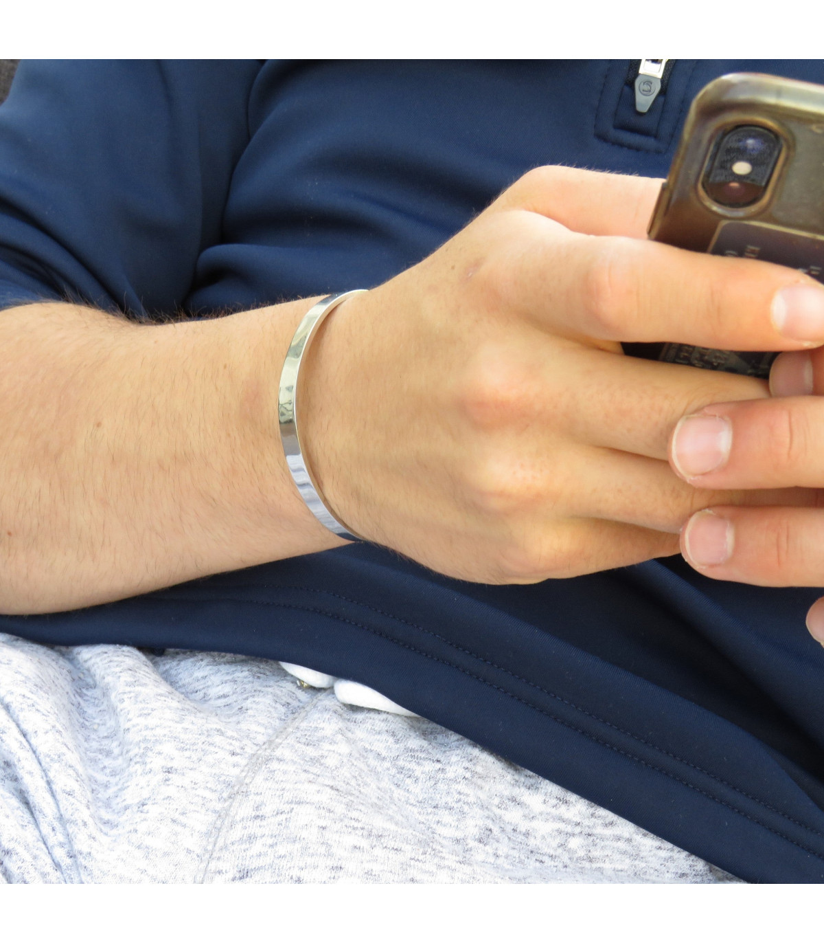 This solid 304 stainless steel bangle is a great gift as a statement piece of jewellery. The plain simple design looks good on its own or when worn in a stack making these great gifts for men or boys and is perfect for the best man, ushers, his 16th, 18th or 21st Birthday, a Graduation or for Fathers day.